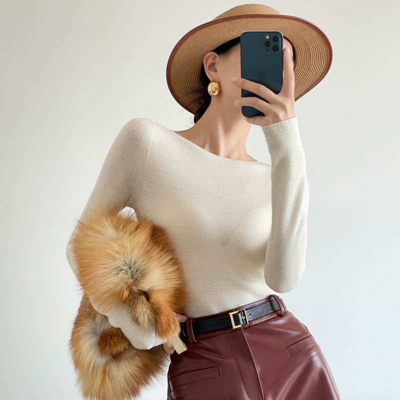 상하이 단농 플래그십 스토어/26 가을 겨울 신상 다마키 세이코 울 워터 웨이브 니트 스웨터 여성용 가을 겨울스토어 가기