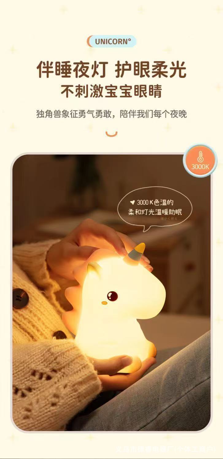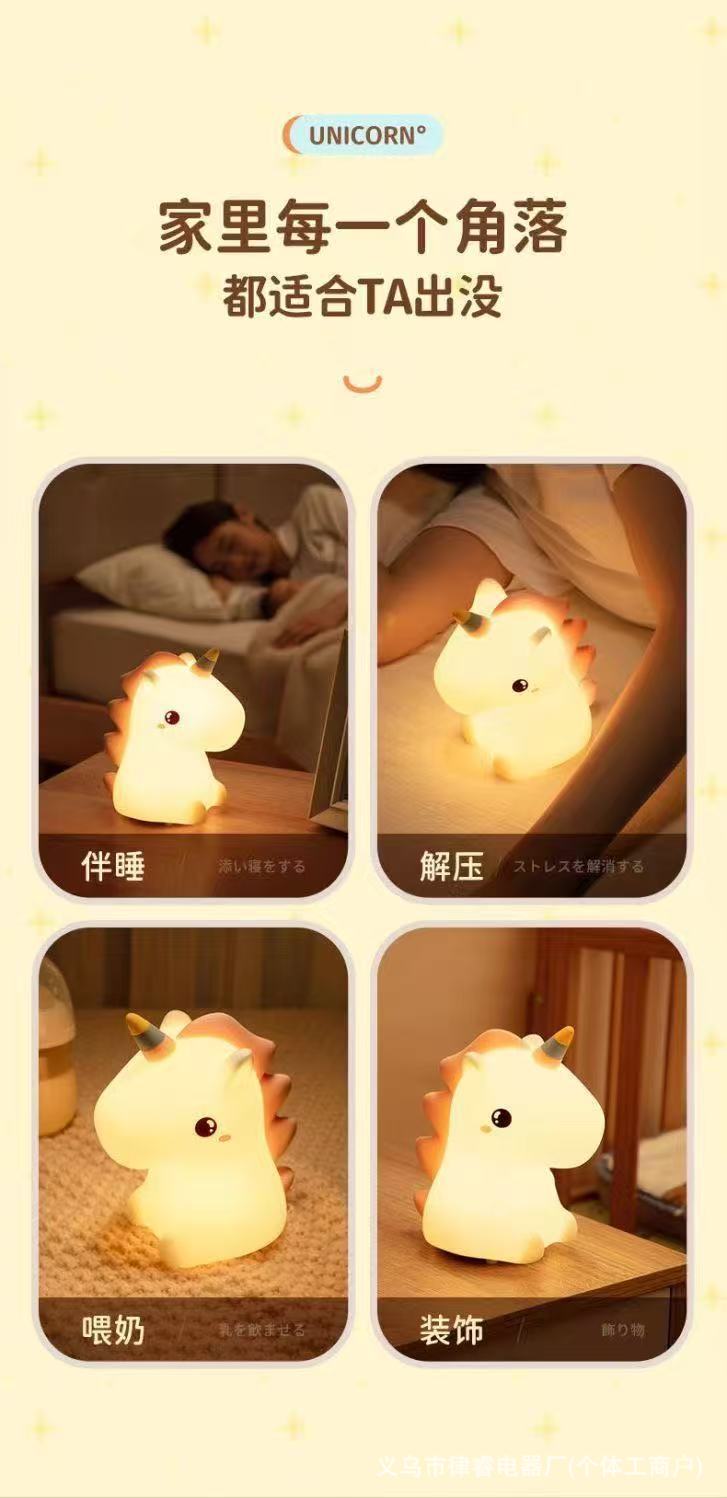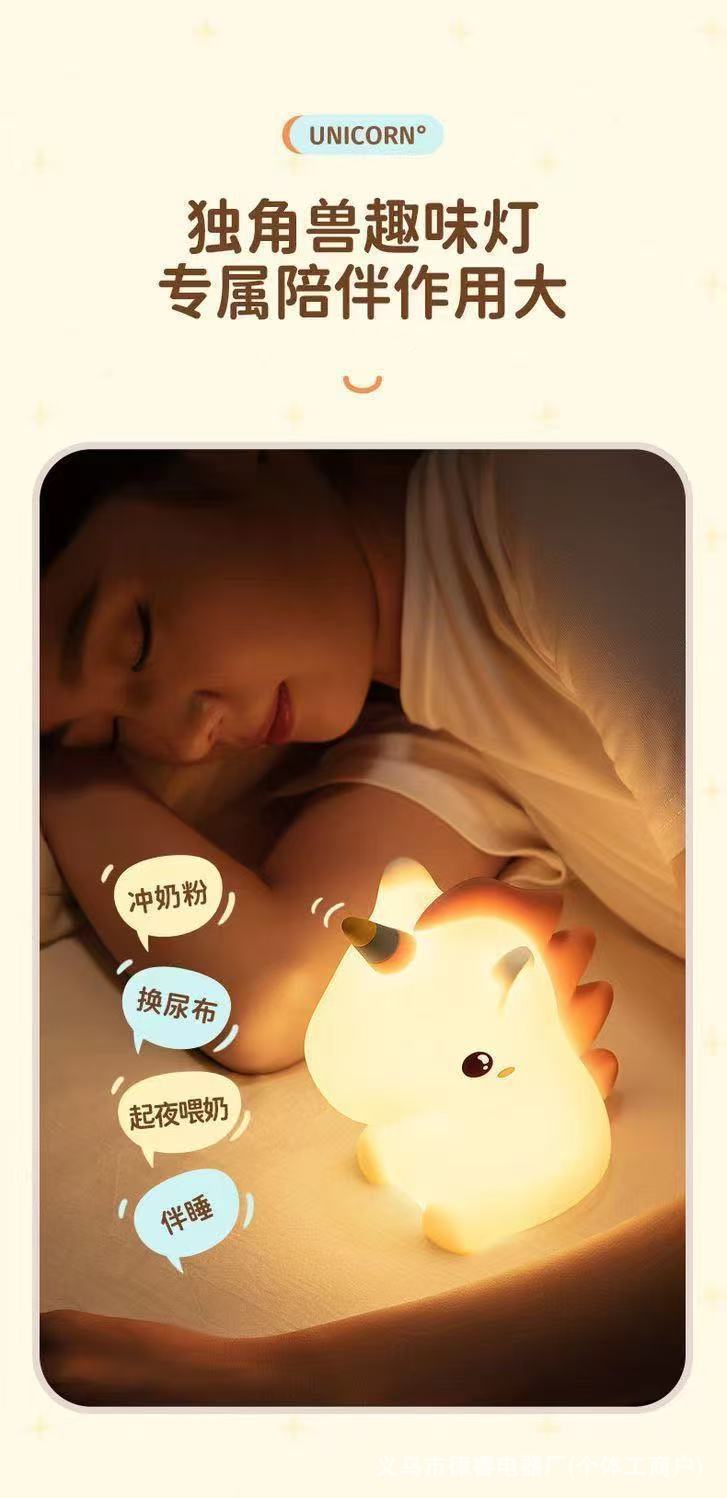 국경을 넘는 유니콘 실리콘 야간등, 터치램프, 아기 수유 및 수면등, 침대 옆 램프, 다채로운 분위기 조명, 테이블 램프스토어 가기