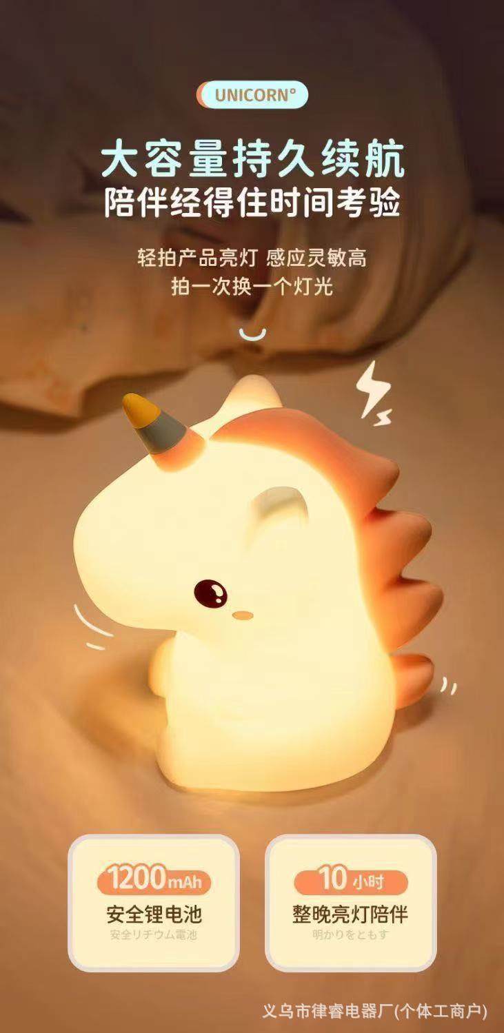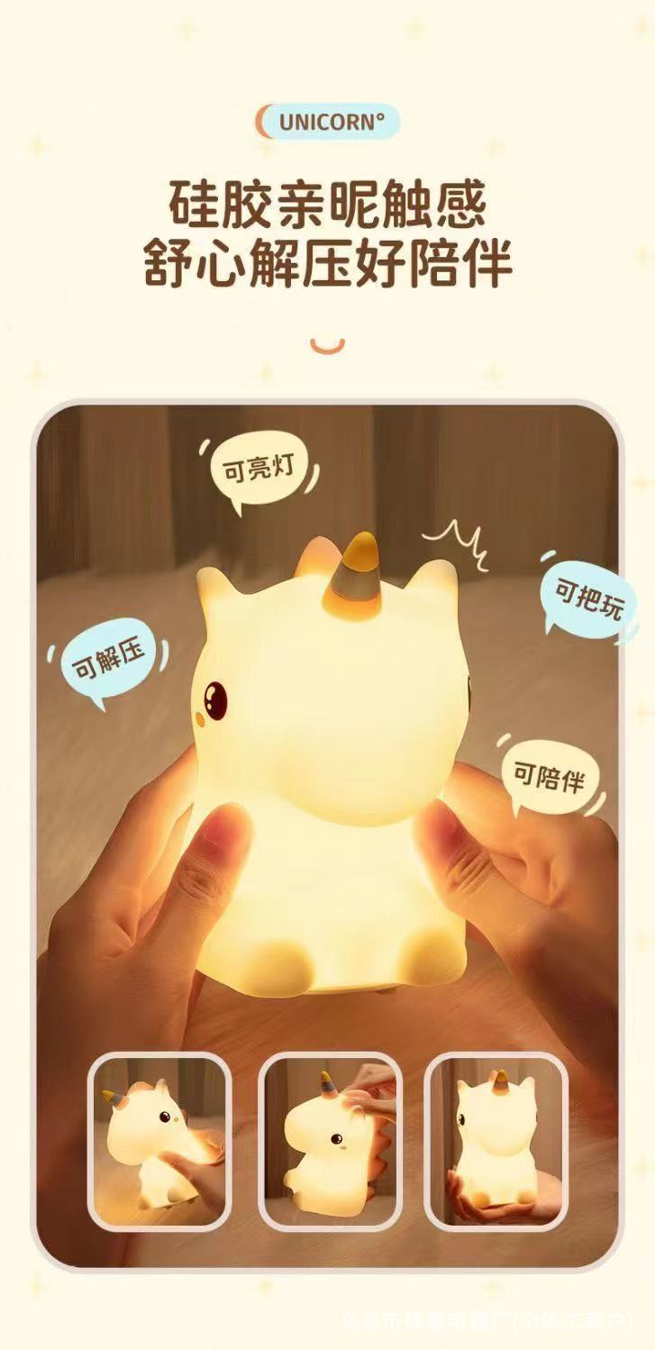 국경을 넘는 유니콘 실리콘 야간등, 터치램프, 아기 수유 및 수면등, 침대 옆 램프, 다채로운 분위기 조명, 테이블 램프