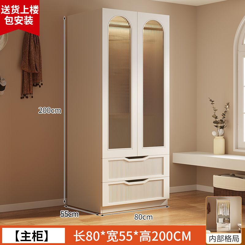 프렌치 크림 스타일 옷장 작은 가정용 슬라이딩 도어 홈 침실 보관 캐비닛 현대적인 간단한 완제품 옷장스토어 가기