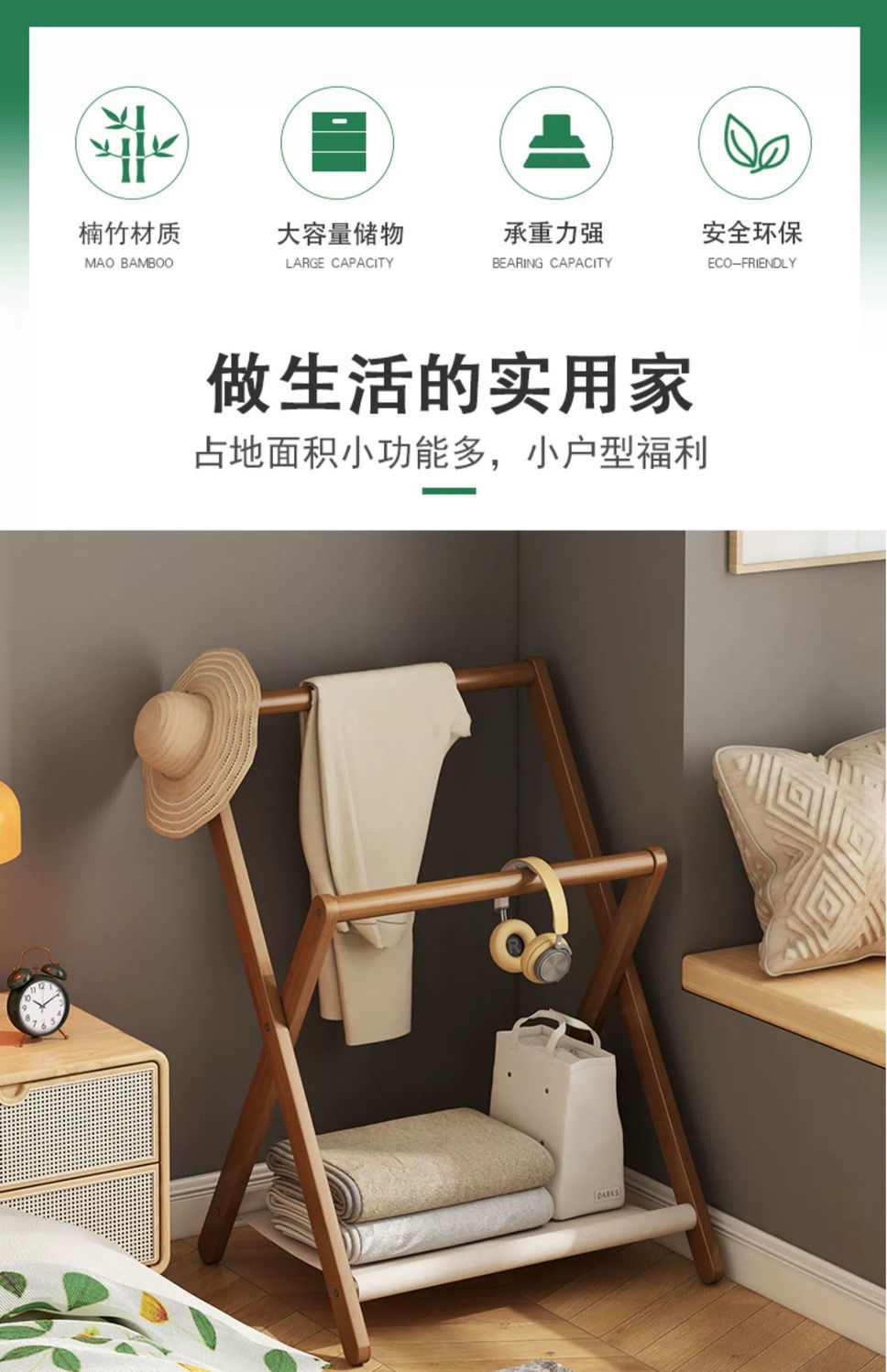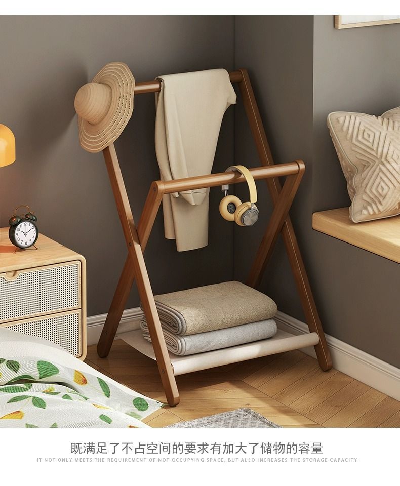 침실 수면 옷걸이 수납 침대 옆 작은 아파트 잠옷 잠옷 잠시 접이식 북유럽 코트 랙 바닥