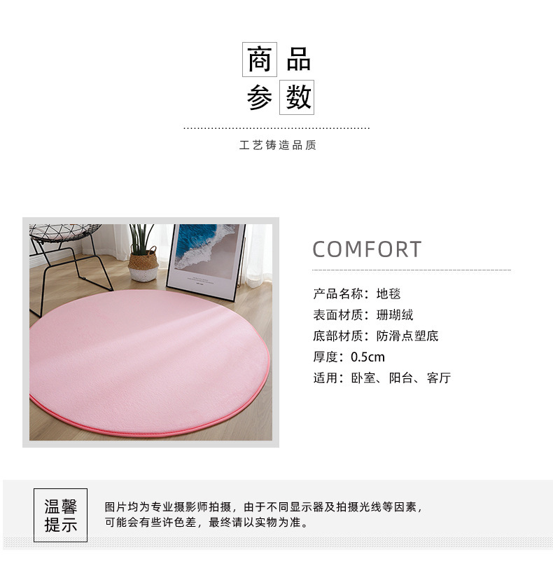 국경 간 단색 산호 벨벳 라운드 카펫 두꺼운 바닥 매트 카펫 거실 커피 테이블 매트 메모리 폼 발 패드 교수형 바구니 매트스토어 가기