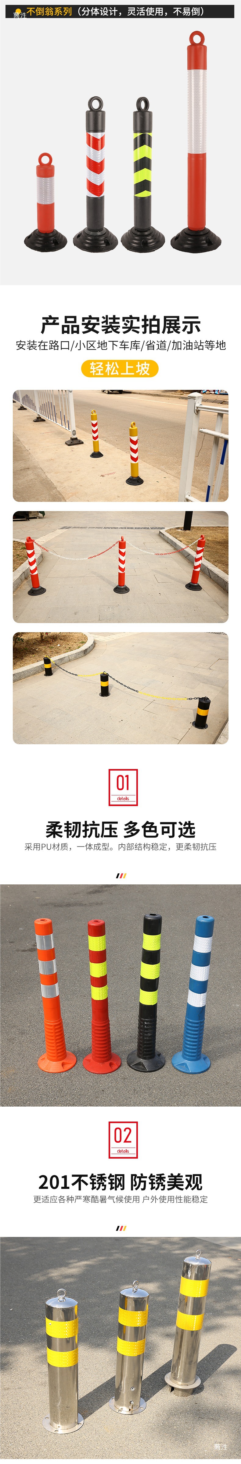 • 75cm 텀블러 경고 기둥 필름 빨간색 몸체 고무 플라스틱 베이스 + 나사