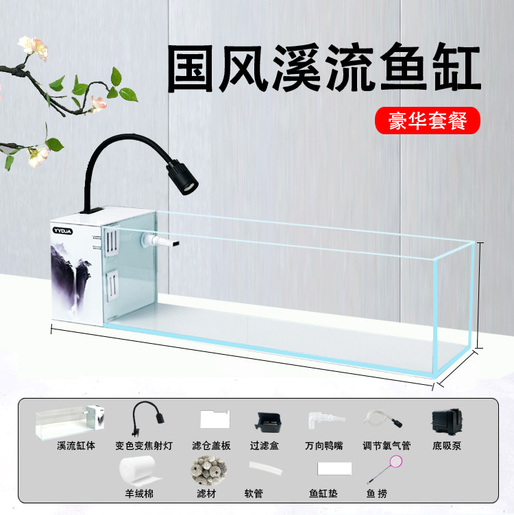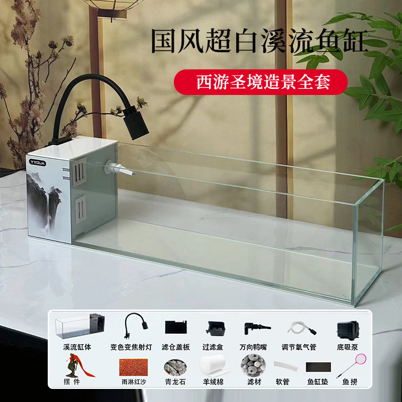 가정용 어류 양식용 계류 수조 조경 생태 순환 여과 신형 계류 수조 조경 풀세트 골드 크리스탈 초백색 탁상용