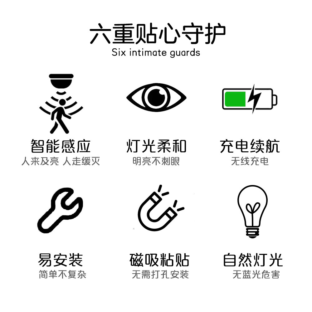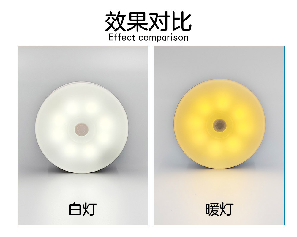 원형 스마트 인체 감지등 복도 캐비닛등 USB 충전 LED 침대 옆 자동 감지 자석 야간등