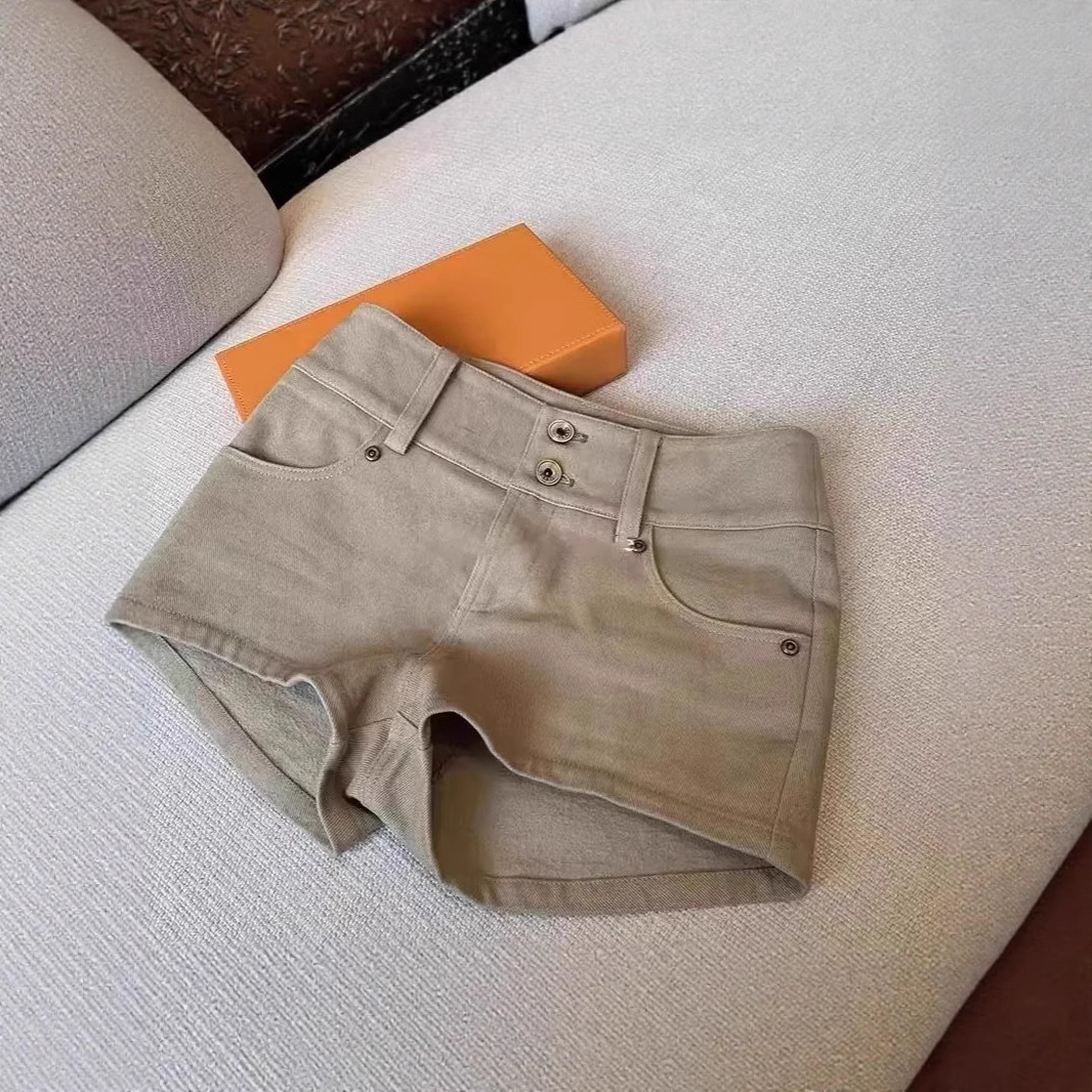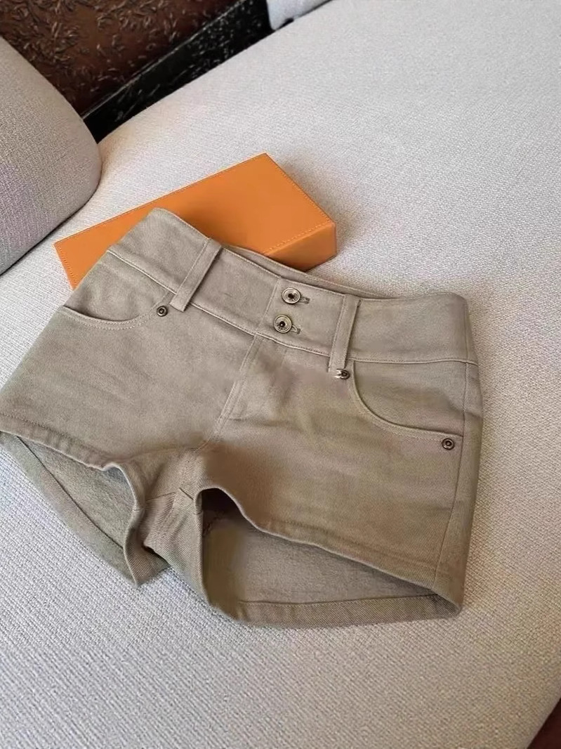 카키 로우 웨이스트 게으른 미국 슬림 핫 소녀 데님 반바지 여성 2025 새로운 봄, 여름 느슨한 스트레치 핫 바지