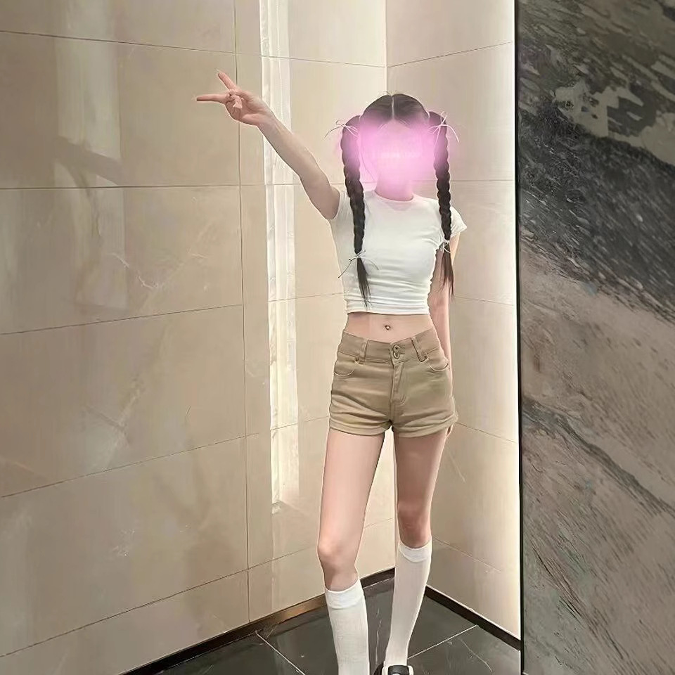 카키 로우 웨이스트 게으른 미국 슬림 핫 소녀 데님 반바지 여성 2025 새로운 봄, 여름 느슨한 스트레치 핫 바지스토어 가기