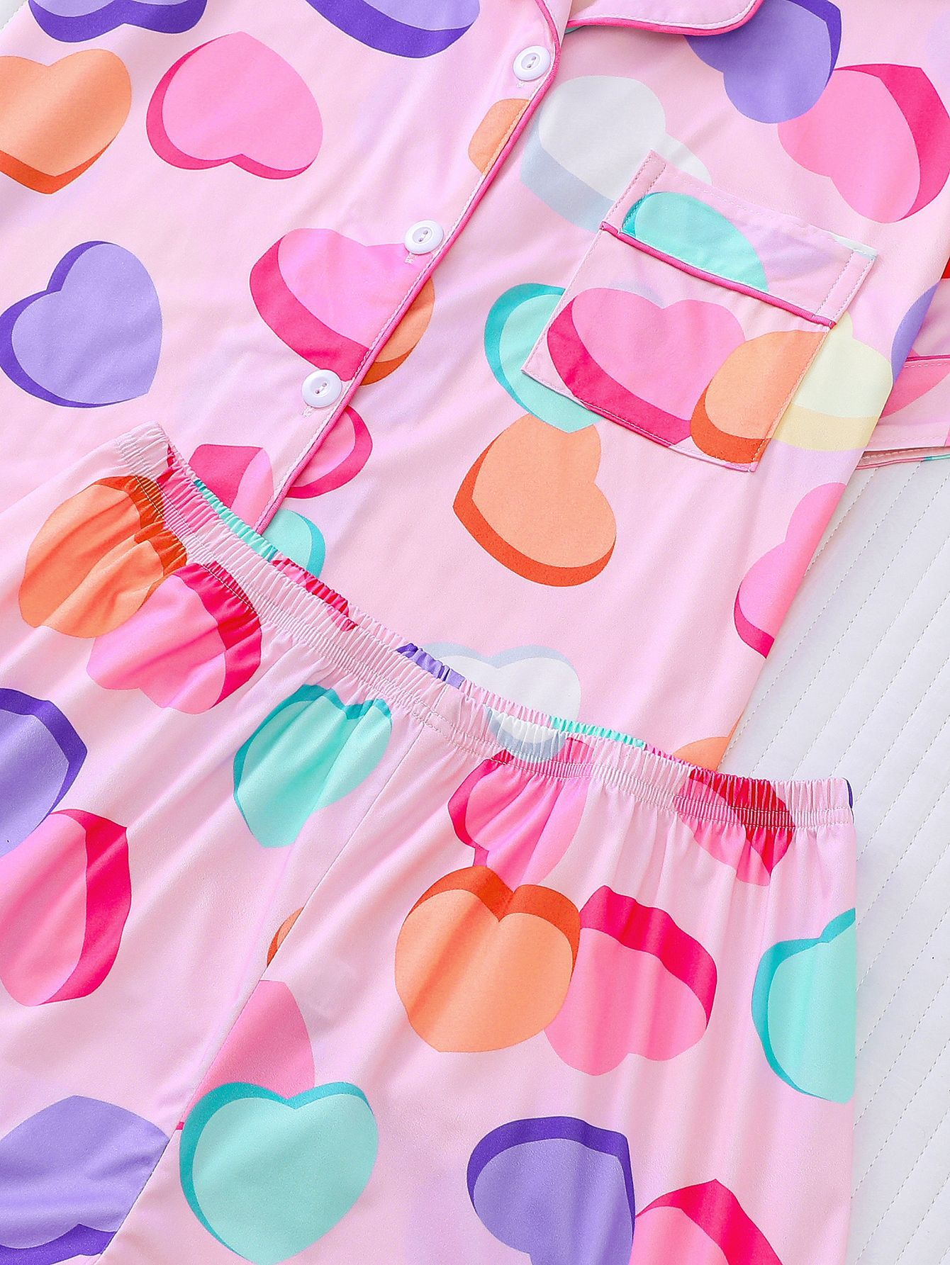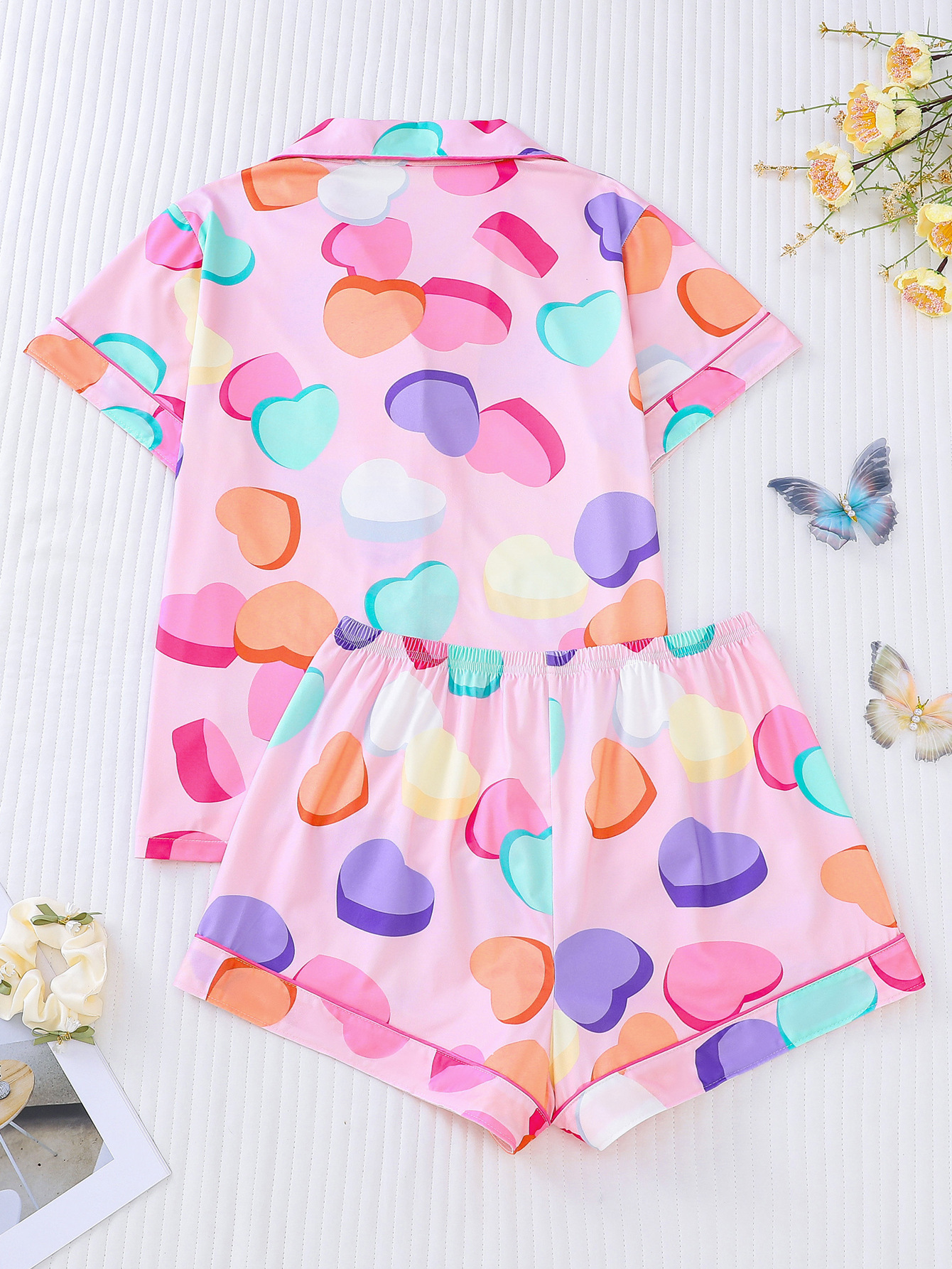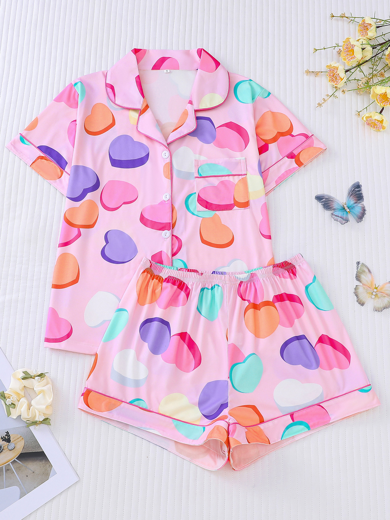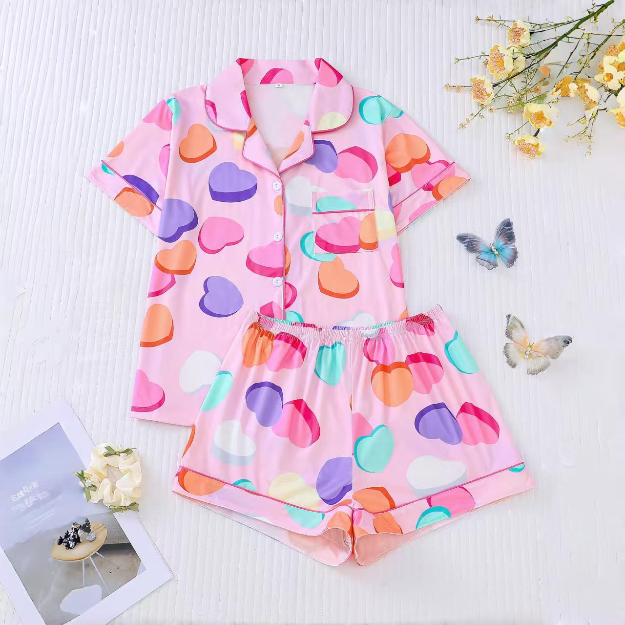 국경 간 대외 무역 도매 유럽과 미국 여성 잠옷 사랑 인쇄 옷깃 반팔 반바지 유럽과 미국 홈웨어 세트스토어 가기