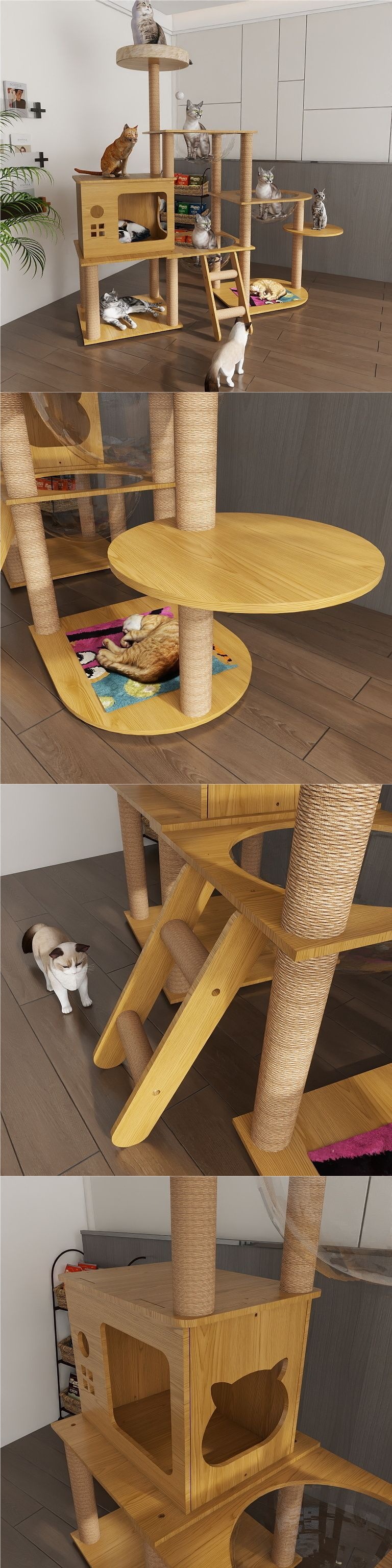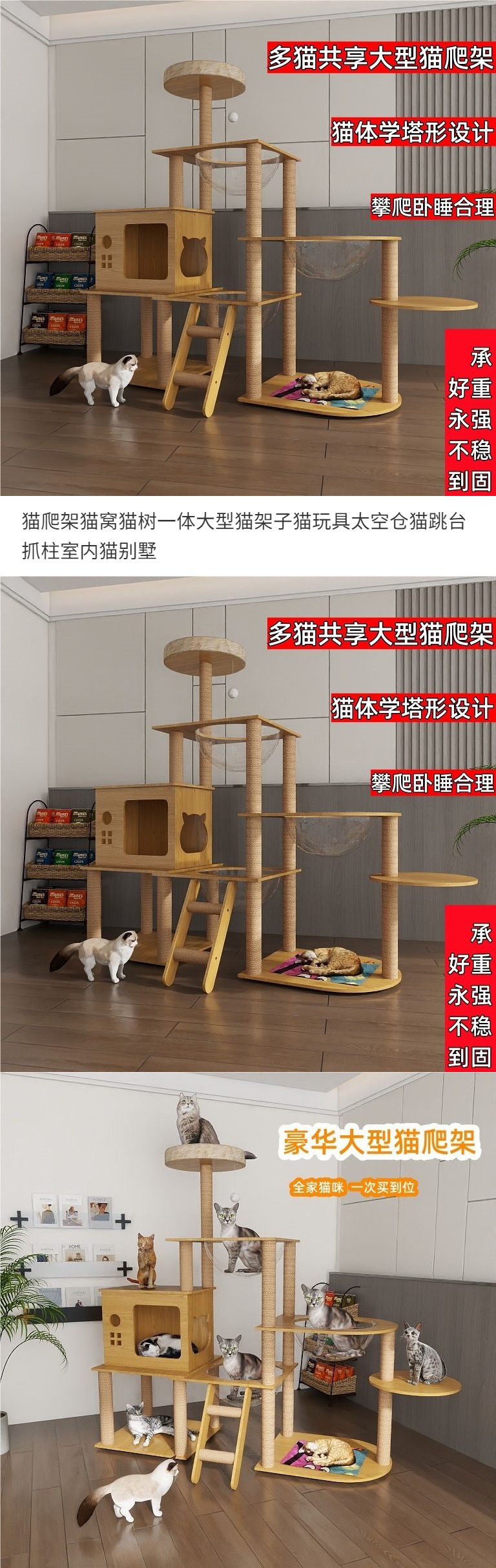 고양이 클라이밍 프레임, 둥지 및 나무 일체형 대형 선반 장난감 공간 창고 고양이 점프 플랫폼 및 스크래치 컬럼 실내 빌라스토어 가기