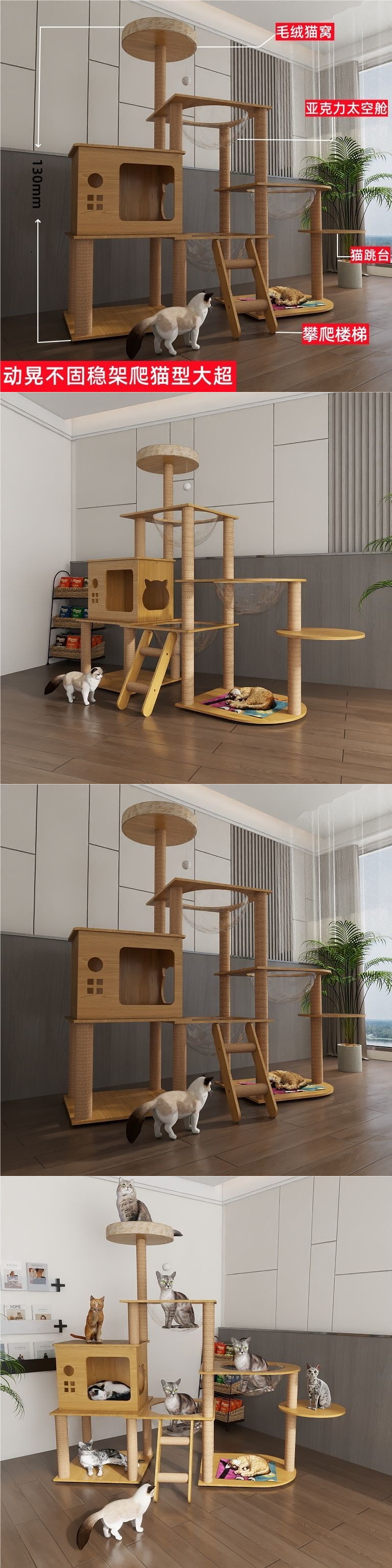 고양이 클라이밍 프레임, 둥지 및 나무 일체형 대형 선반 장난감 공간 창고 고양이 점프 플랫폼 및 스크래치 컬럼 실내 빌라