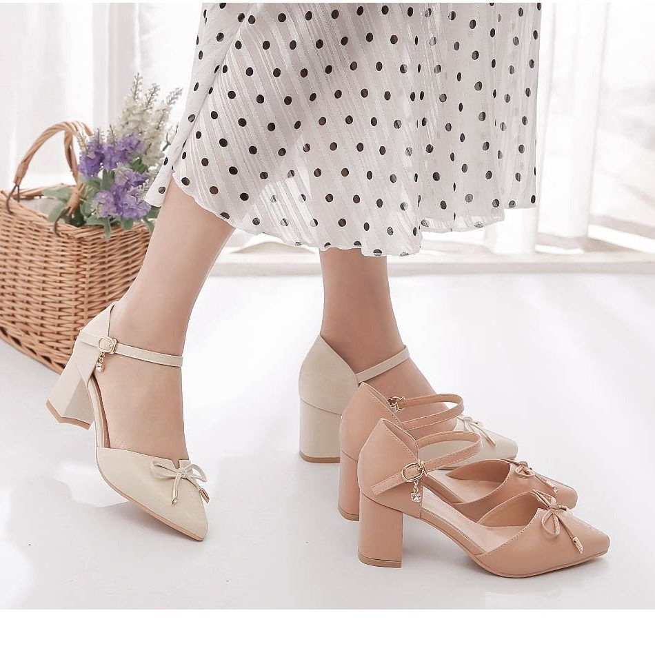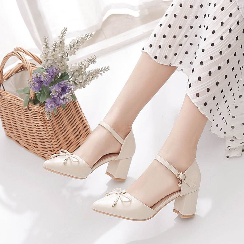 여성용 샌들 2025 스커트가 있는 새로운 스타일의 뾰족한 굽, 부드러운 싱글 슈즈, 패셔너블한 로우힐, 토캡, 페어리 스타일, 다용도스토어 가기