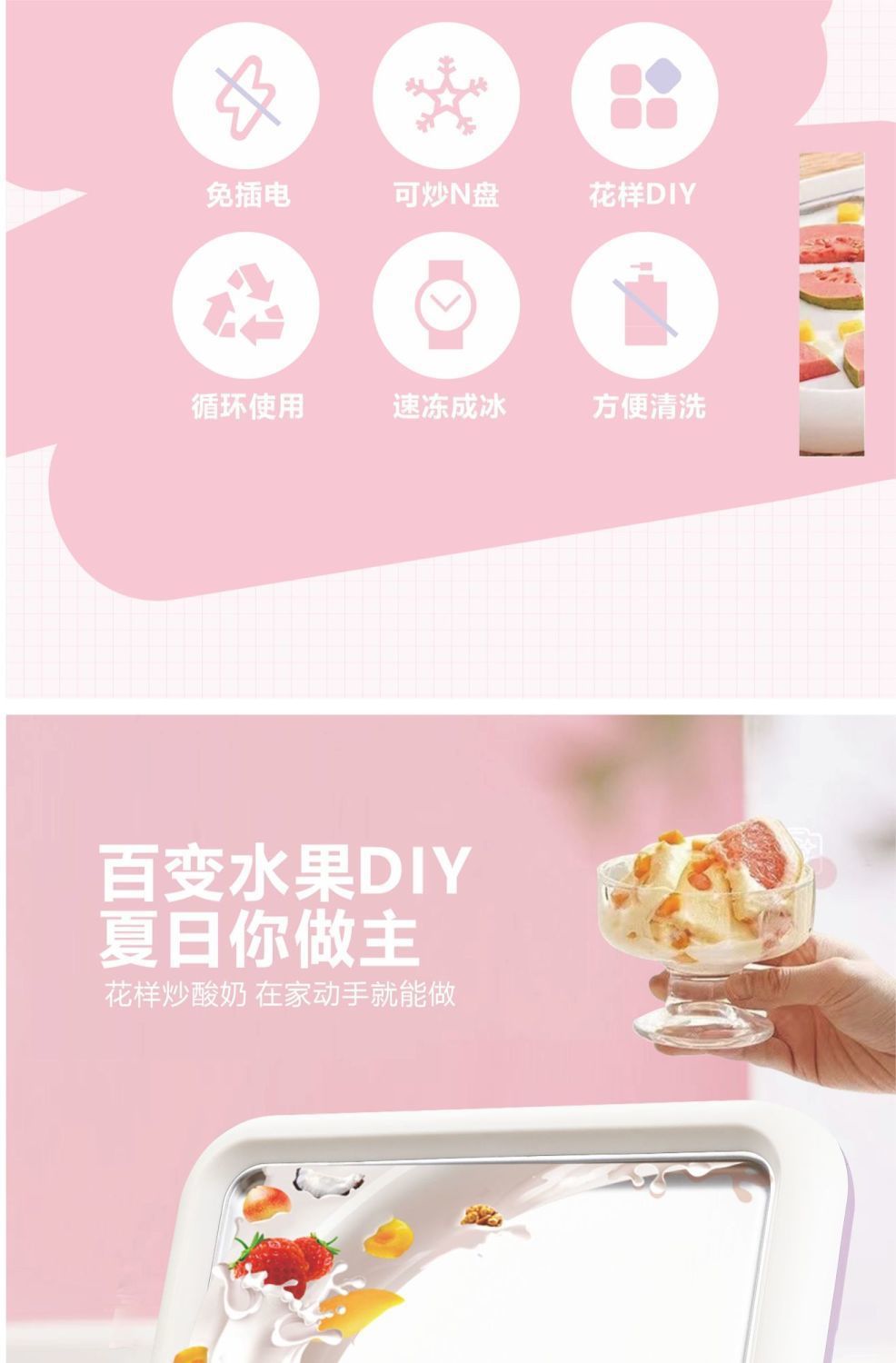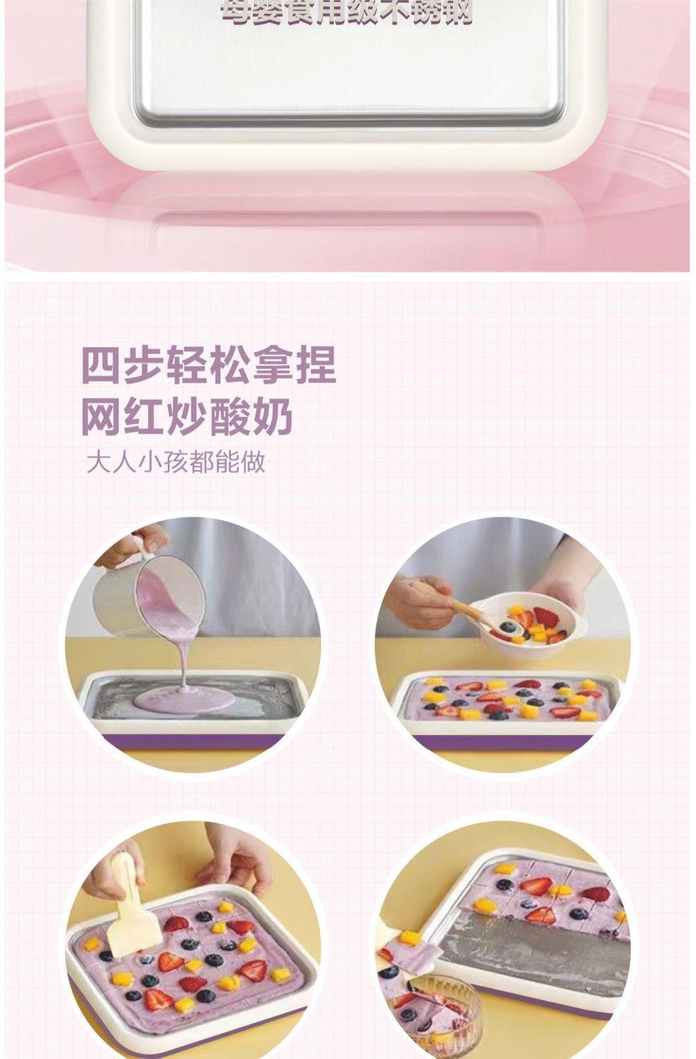 독일 요거트 프라이팬 얼음 기계 가정용 플러그인 무료 수제 diy 인터넷 연예인 어린이 아이스크림 기계 냉동 트레이