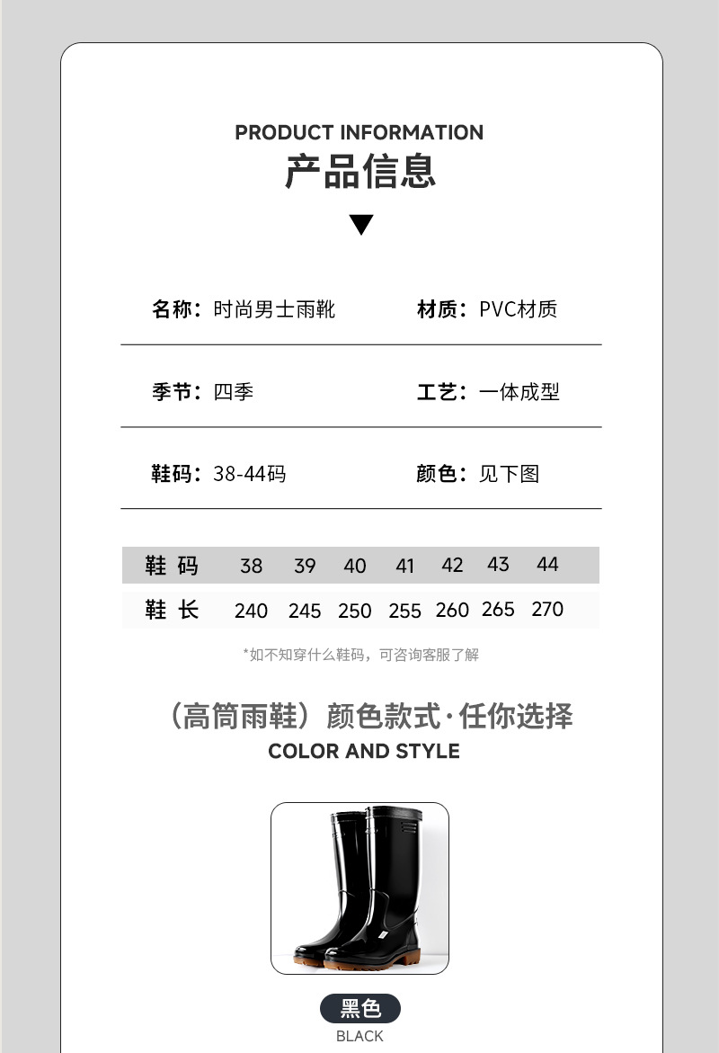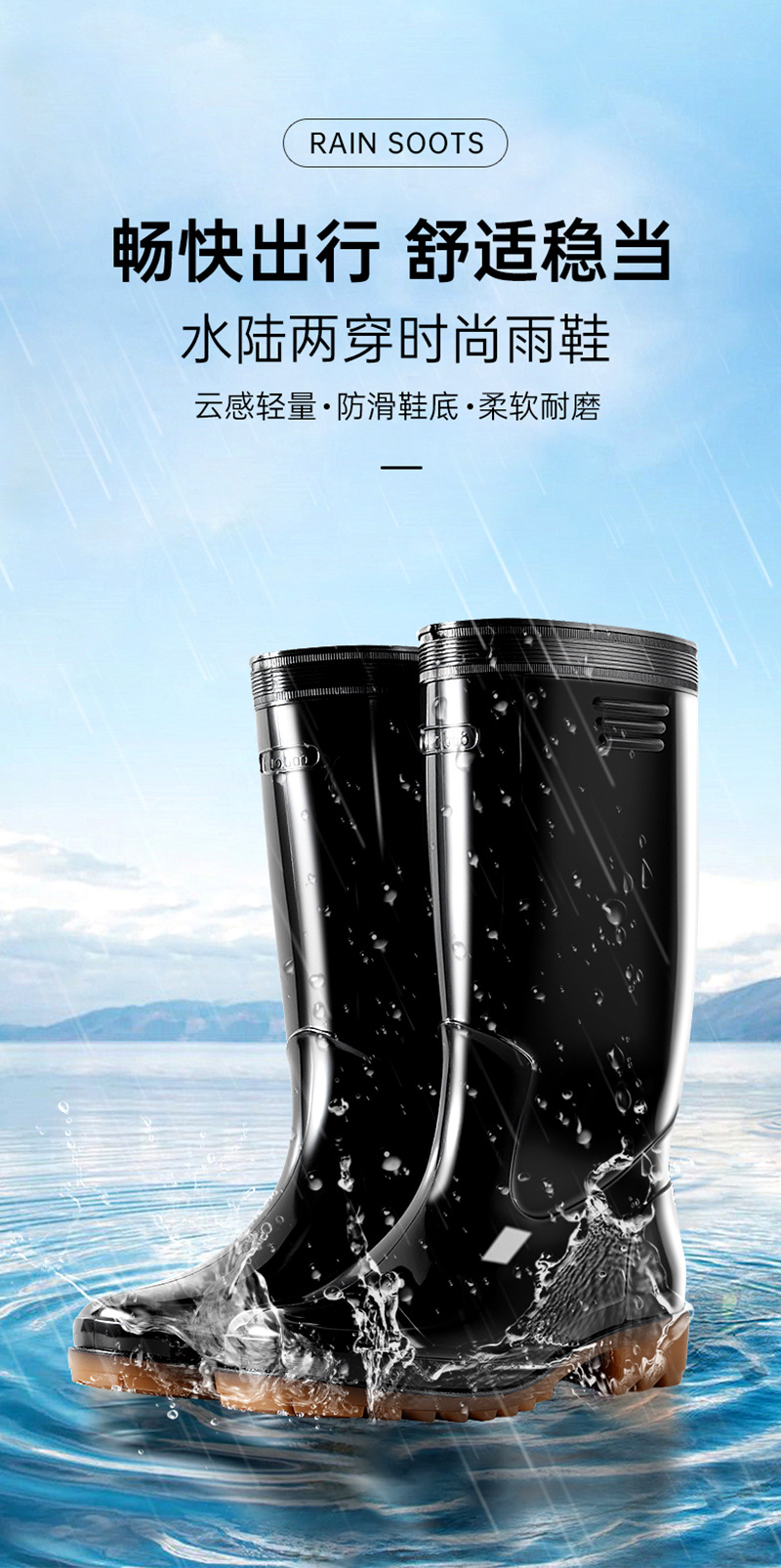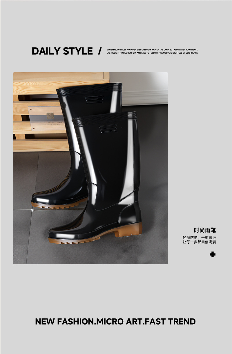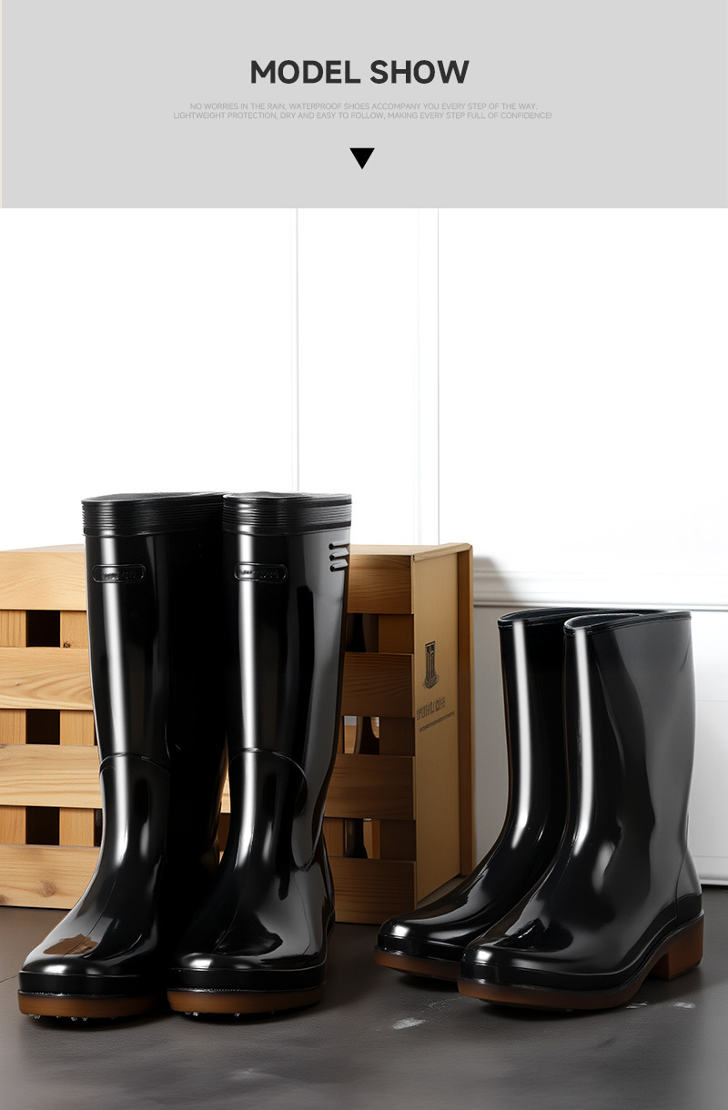 남성용 장화, 방수성, 야외용 장화, 두꺼운 미끄럼 방지, 내마모성, 비오는 날의 워터슈즈, 방수 노동 보호 고무신