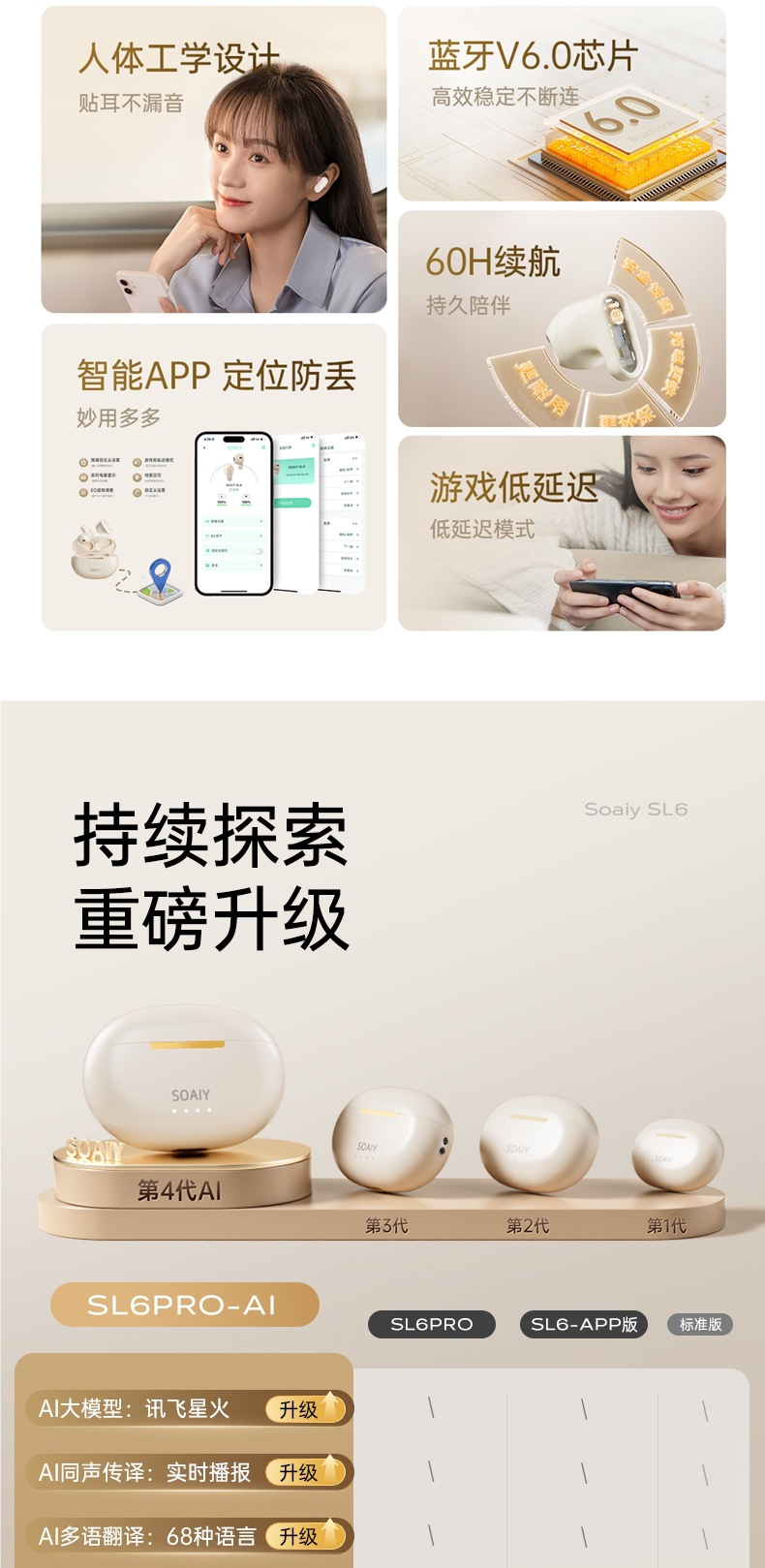 소니 에릭슨 SL6 블루투스 헤드셋 무선 세미 인 이어 스포츠 2025 새로운 슈퍼 긴 배터리 수명 공식 정통 소녀