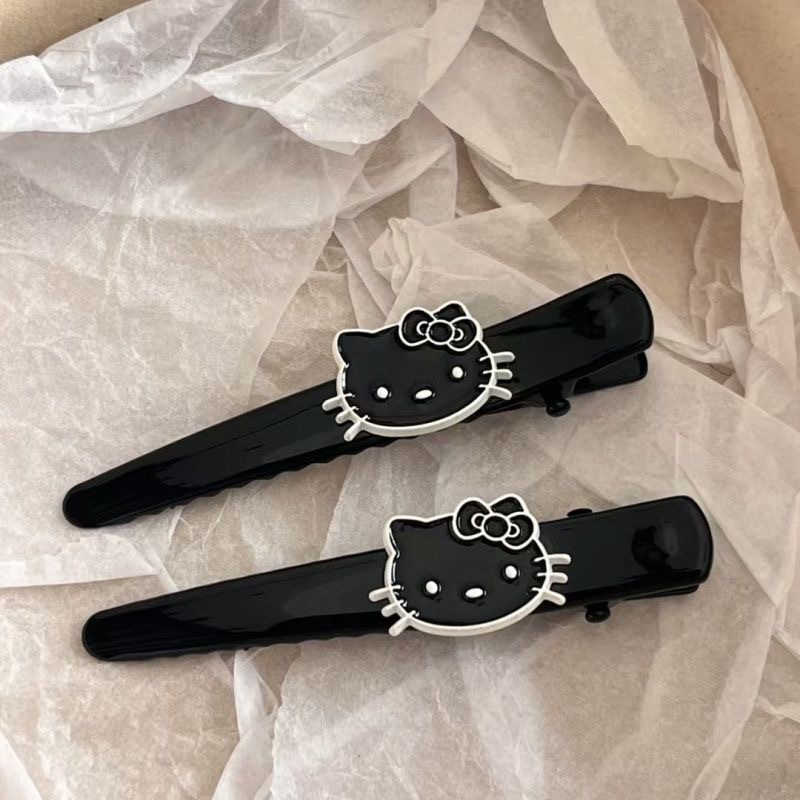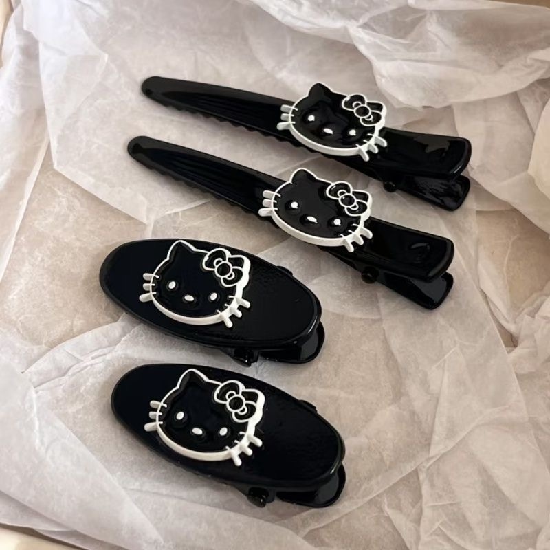 새로운 한국 스타일 검은 가죽 검은 kt 앞머리 클립 하이 엔드 머리 장식 헤어 액세서리 머리핀 여성 귀여운 고양이 머리핀