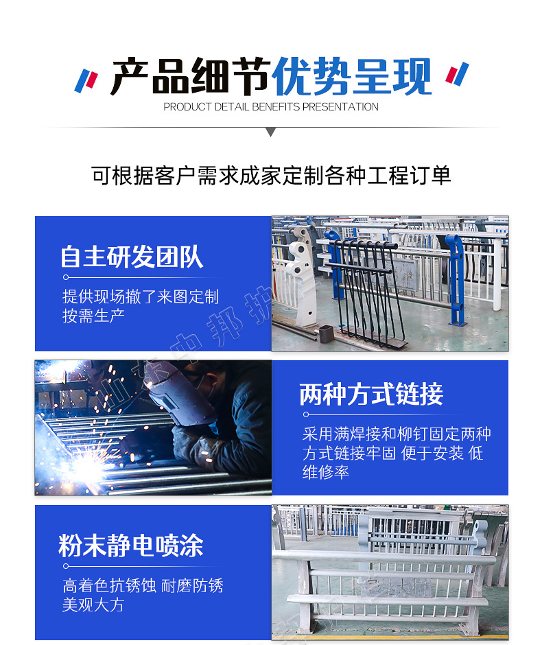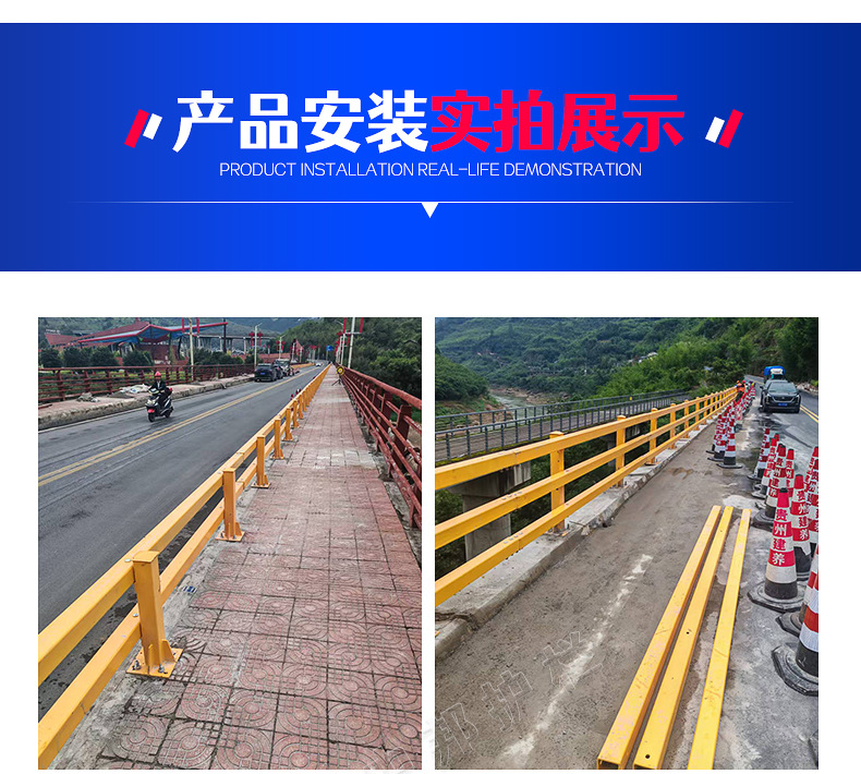 두꺼운 교량 충돌 방지 가드레일 Q235 교량 가드레일은 양쪽에 안전하고 강한 충돌 방지 가드레일을 갖추고 있습니다.