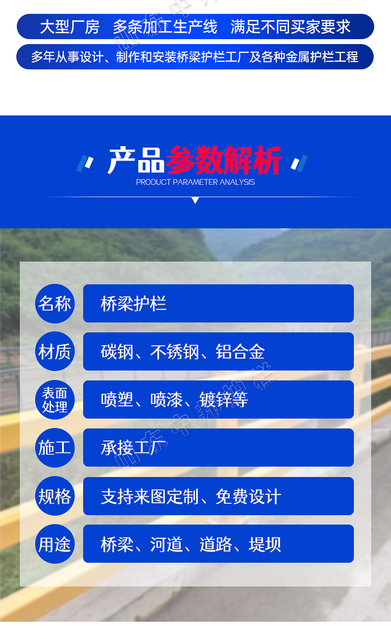 두꺼운 교량 충돌 방지 가드레일 Q235 교량 가드레일은 양쪽에 안전하고 강한 충돌 방지 가드레일을 갖추고 있습니다.스토어 가기