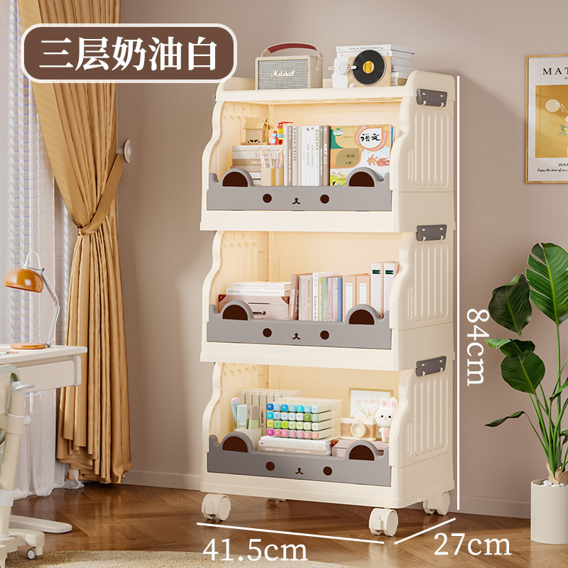 책장 바닥 스토리지 랙 홈 아기 그림책 랙 어린이 책장 접이식 책 장난감 스토리지 랙 바퀴 포함
