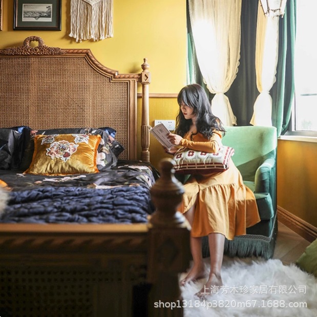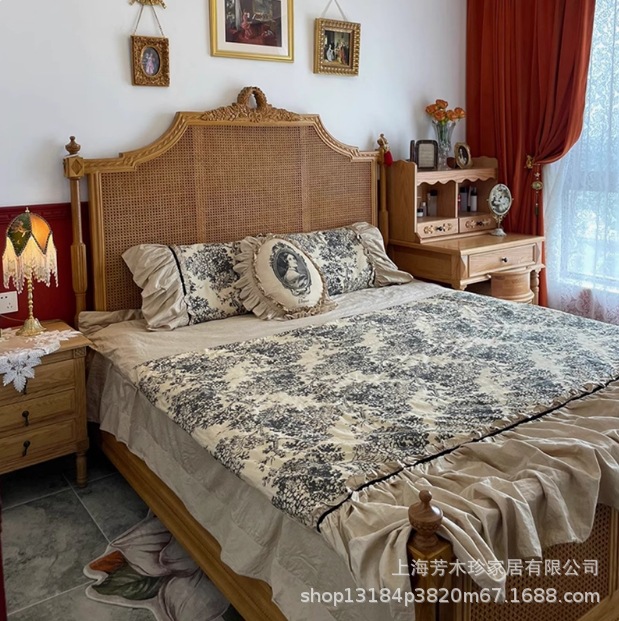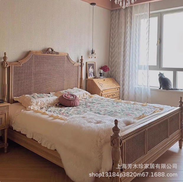 미국 컨트리 스타일 중간 등나무 침대 프랑스 조각 공주 등나무 침대 난양 호텔 B&B 마스터 침실 더블 웨딩 침대스토어 가기