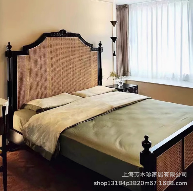 미국 컨트리 스타일 중간 등나무 침대 프랑스 조각 공주 등나무 침대 난양 호텔 B&B 마스터 침실 더블 웨딩 침대
