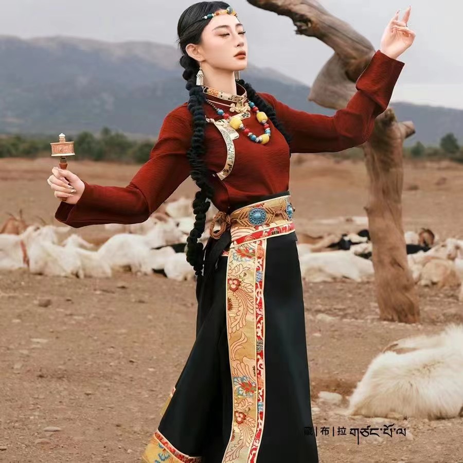 Fansha 티베트 의상 새로운 스타일 스커트 티베트 고급 Gastrodia potzhuang 댄스 스커트 티베트 의상 여성 스커트스토어 가기