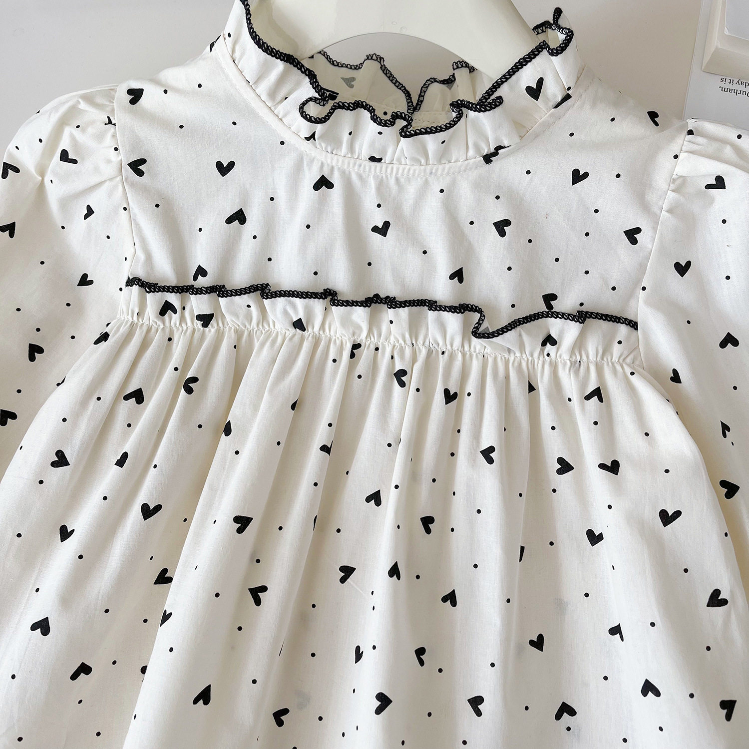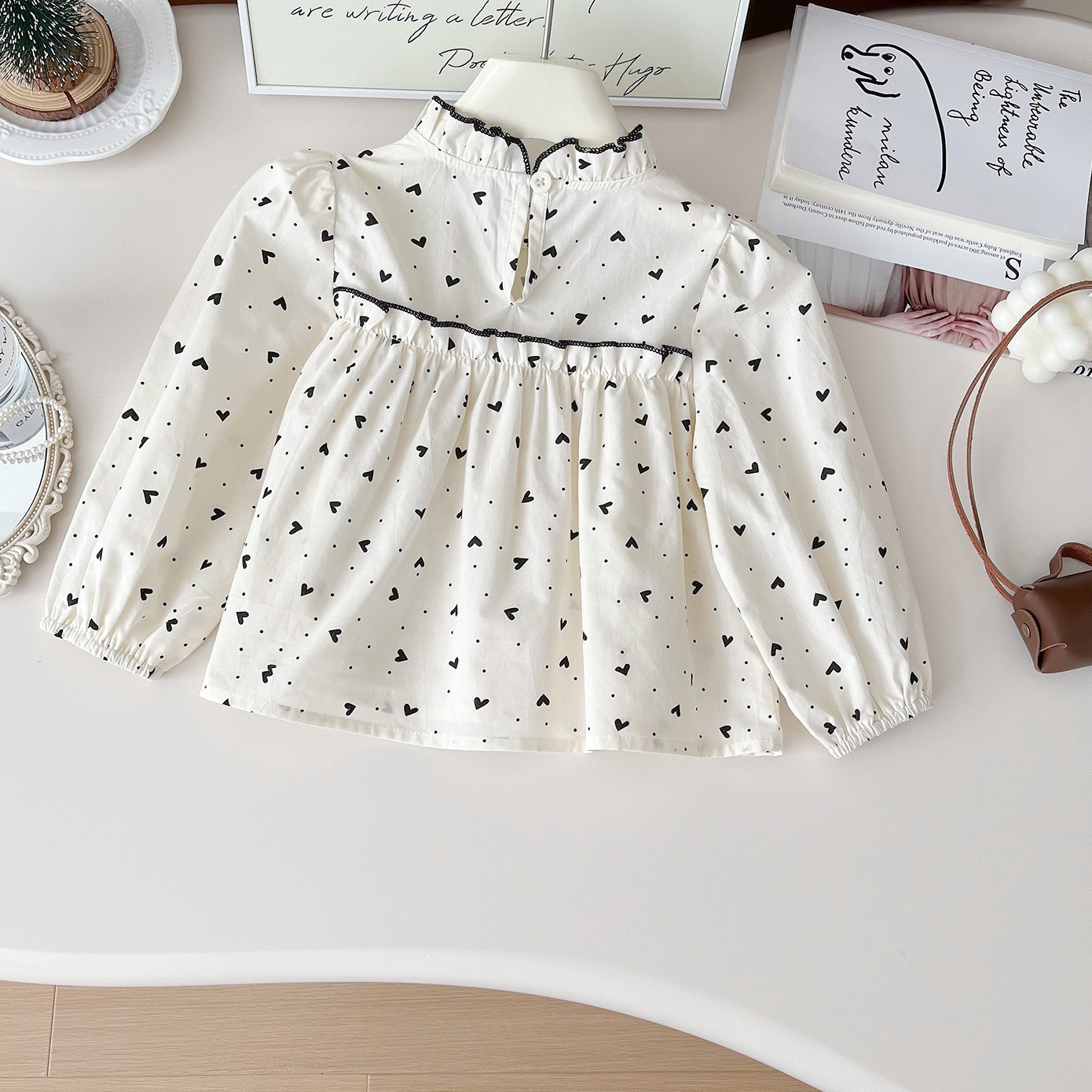 2024 아동복 한국 스타일 가을 소녀 새로운 달콤한 스타일 사랑 긴팔 인형 셔츠