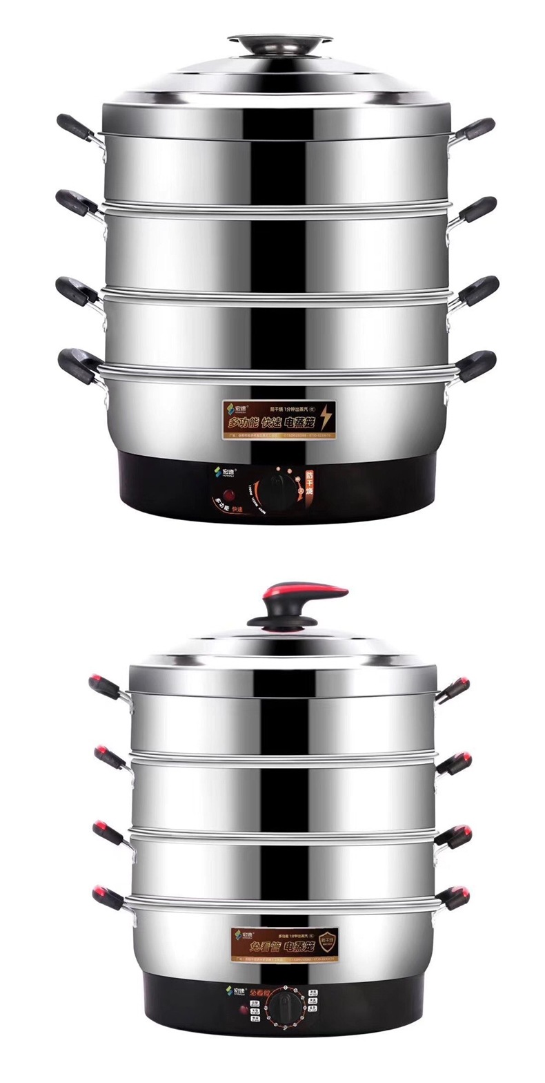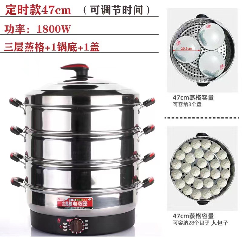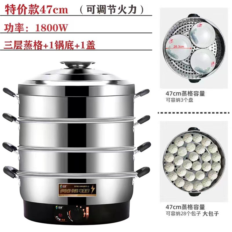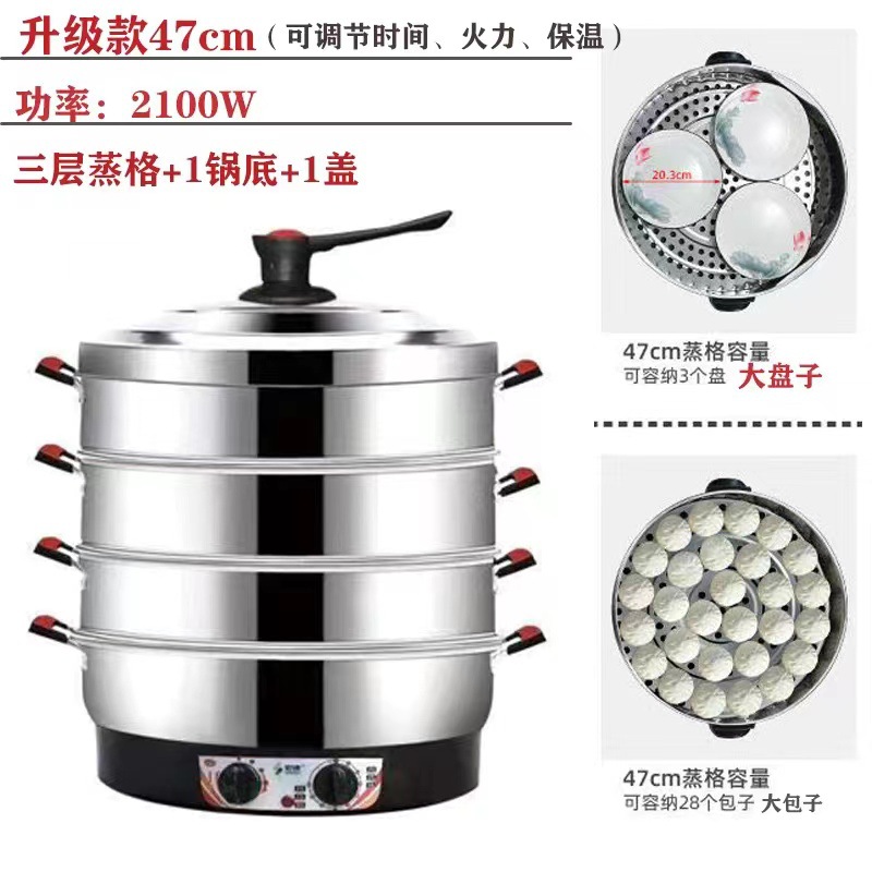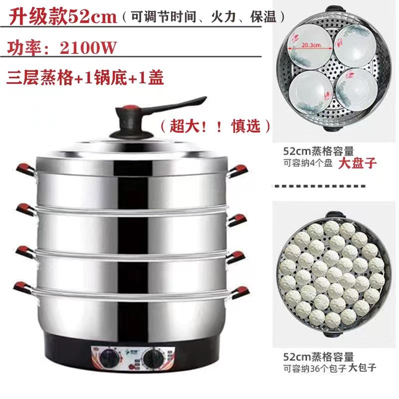 초대형 전기찜기, 상업용 플러그인 찜기, 보온 스테인리스 자동 전원 차단 52cm 전기 찜기, 3단 찐빵