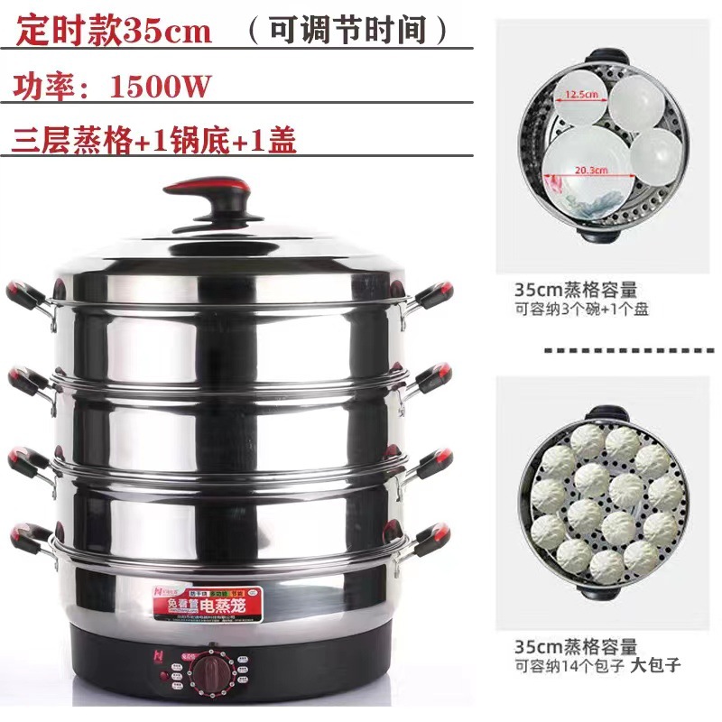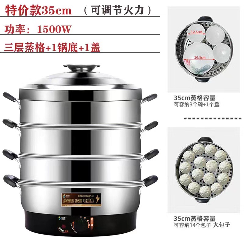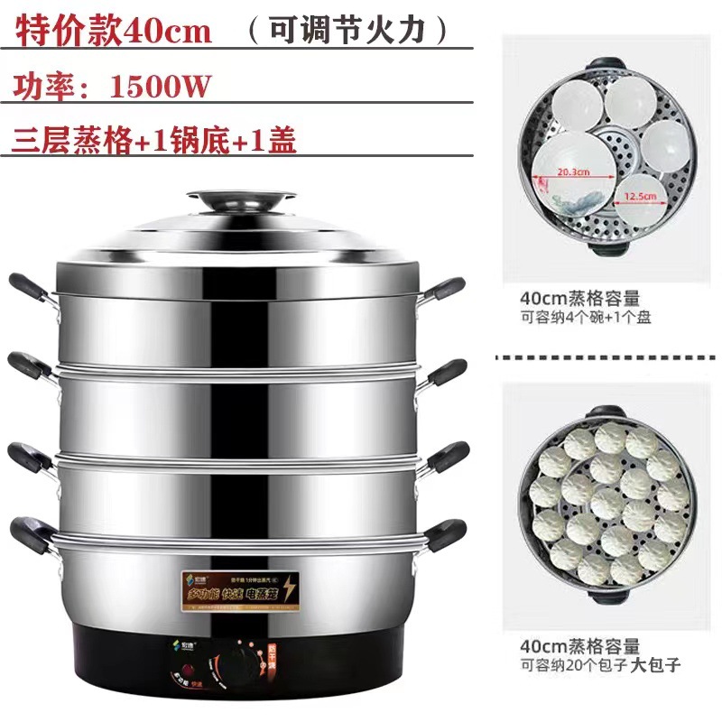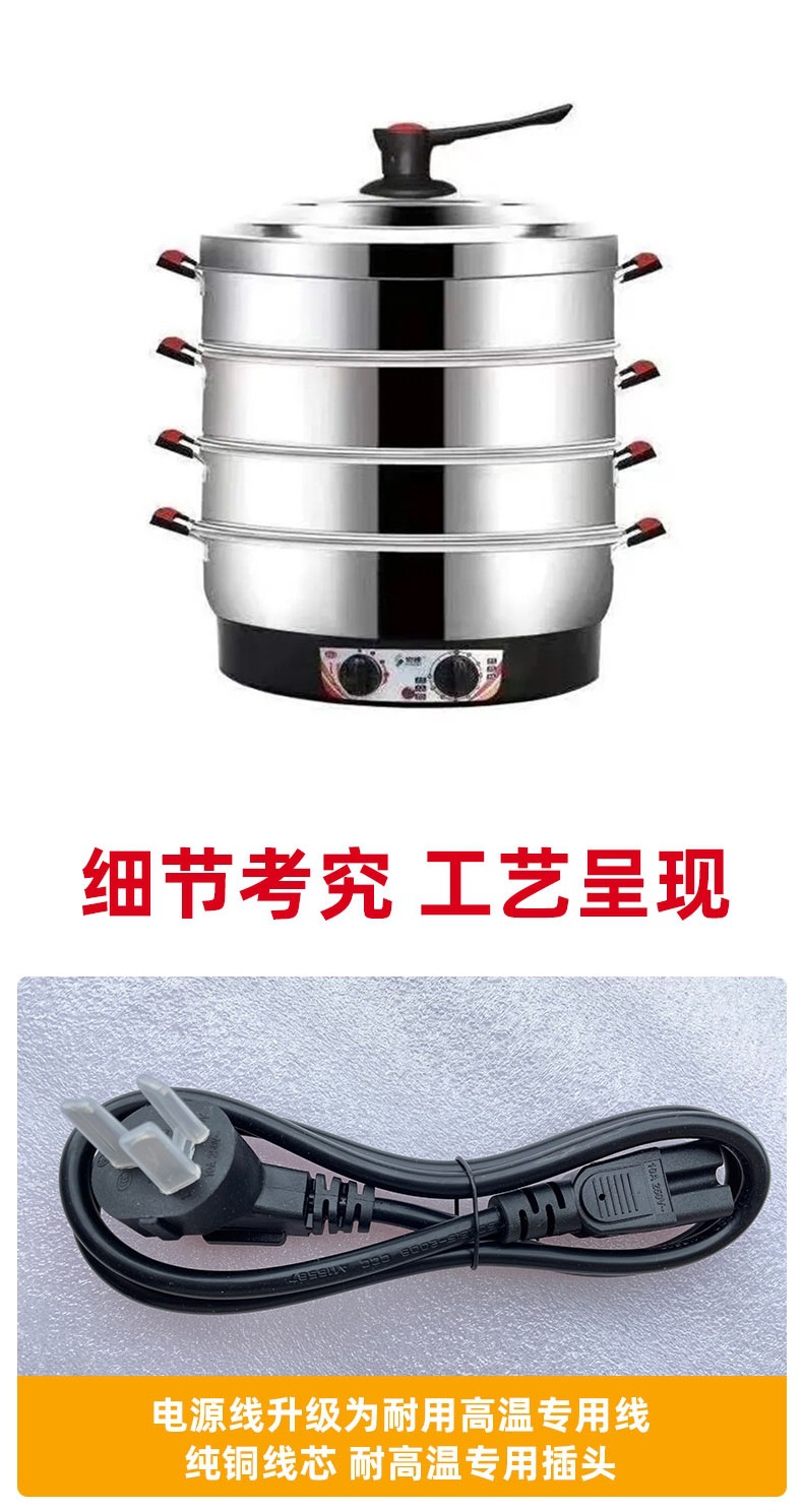 초대형 전기찜기, 상업용 플러그인 찜기, 보온 스테인리스 자동 전원 차단 52cm 전기 찜기, 3단 찐빵스토어 가기