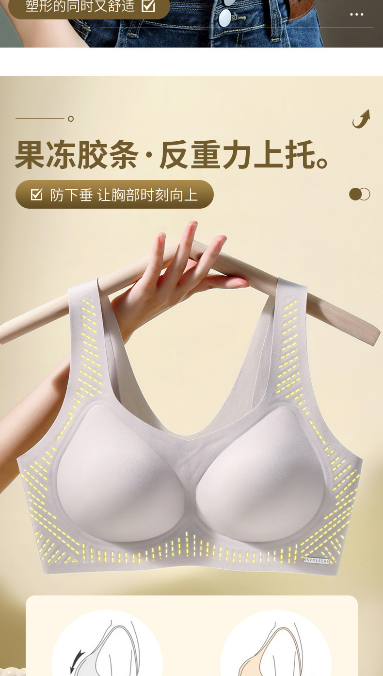 여성용 젤리 스트립 속옷, 가볍고 통기성이 뛰어나며 리프팅 및 푸시업, 보조 가슴 수축, 고정 컵, 와이어 없음, 여름용 심리스 브라스토어 가기