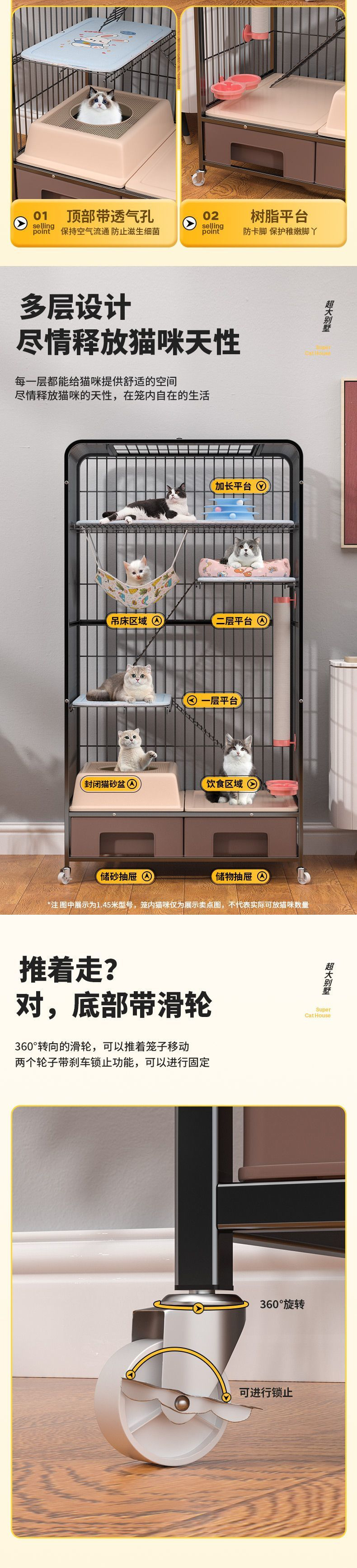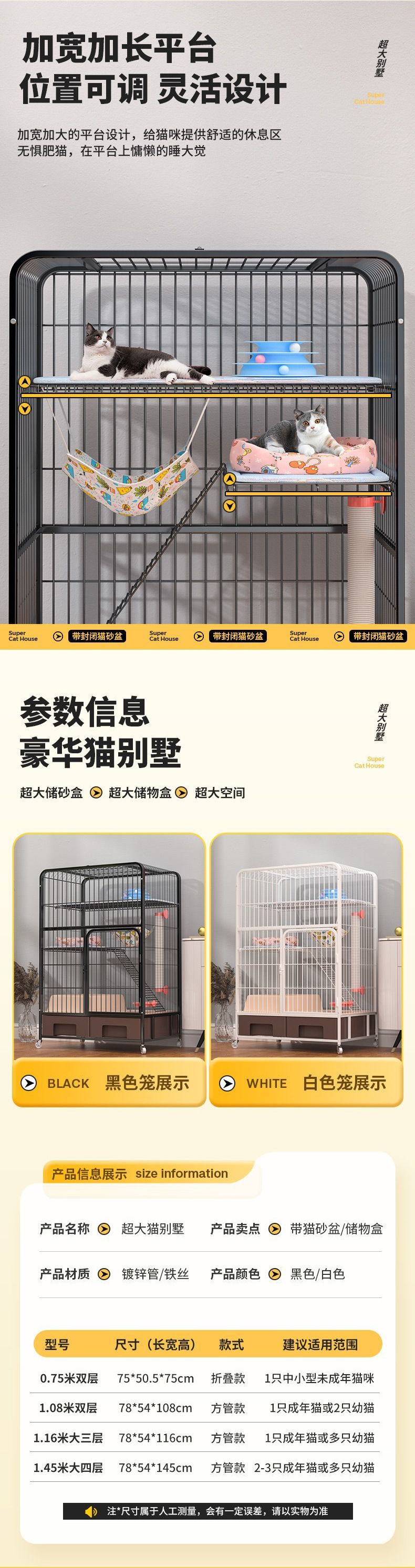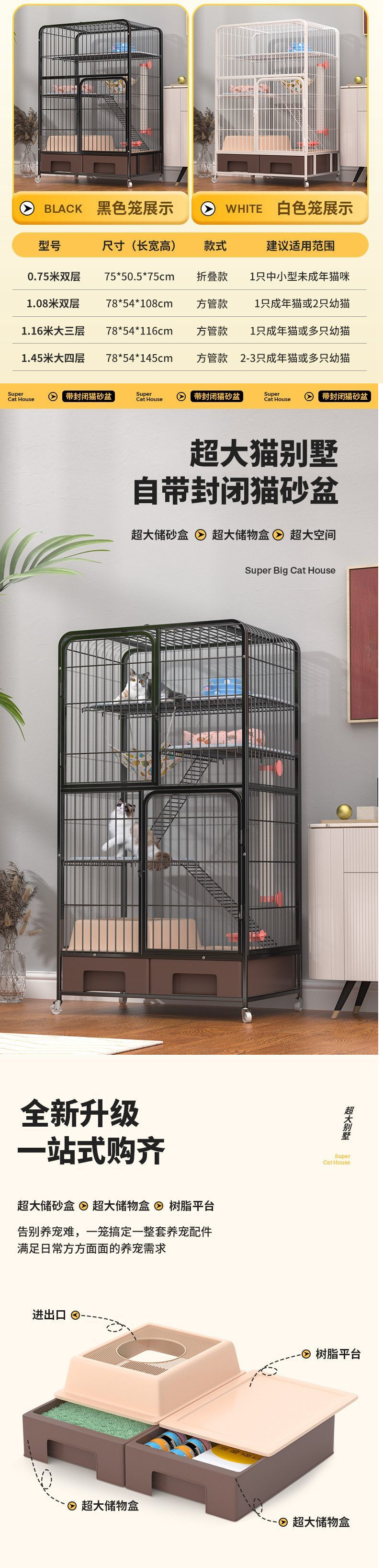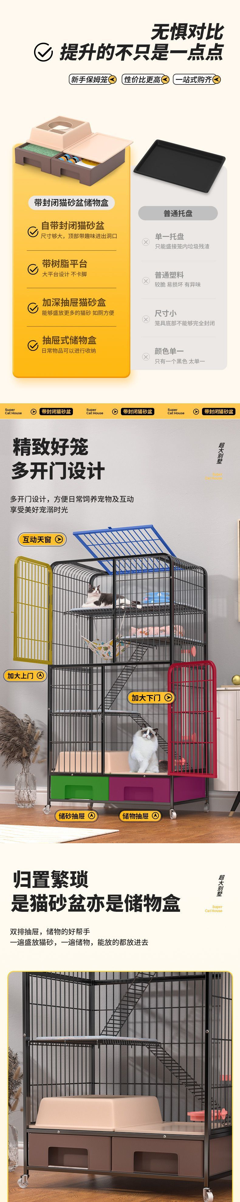 고양이 케이지 초대형 가정용 실내 다층 고양이 빌라 화장실 일체형 고양이 케이지 서랍형 고양이 쓰레기통