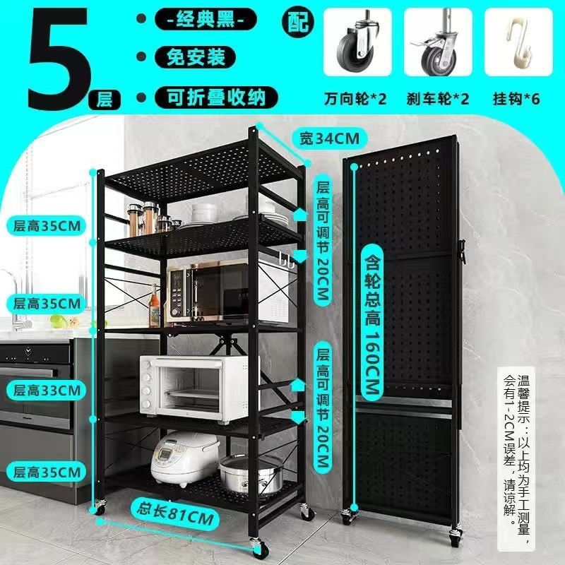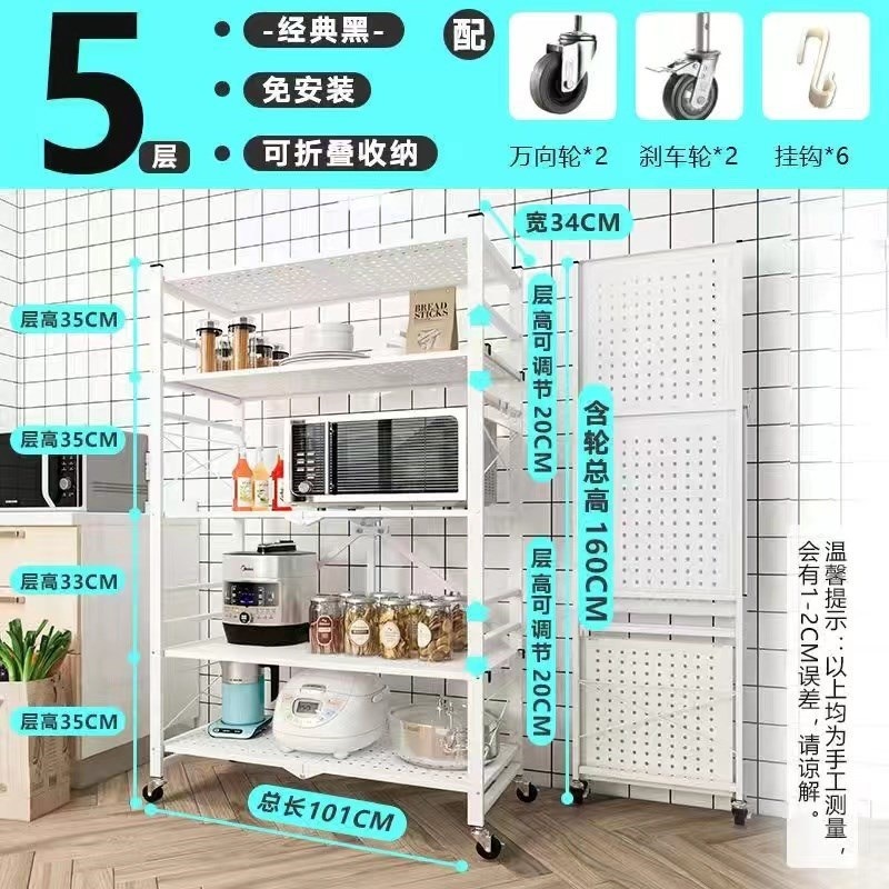 설치가 필요 없는 접이식 주방용품 수납선반, 바닥형 다층 오븐 냄비걸이, 전자레인지 수납선반