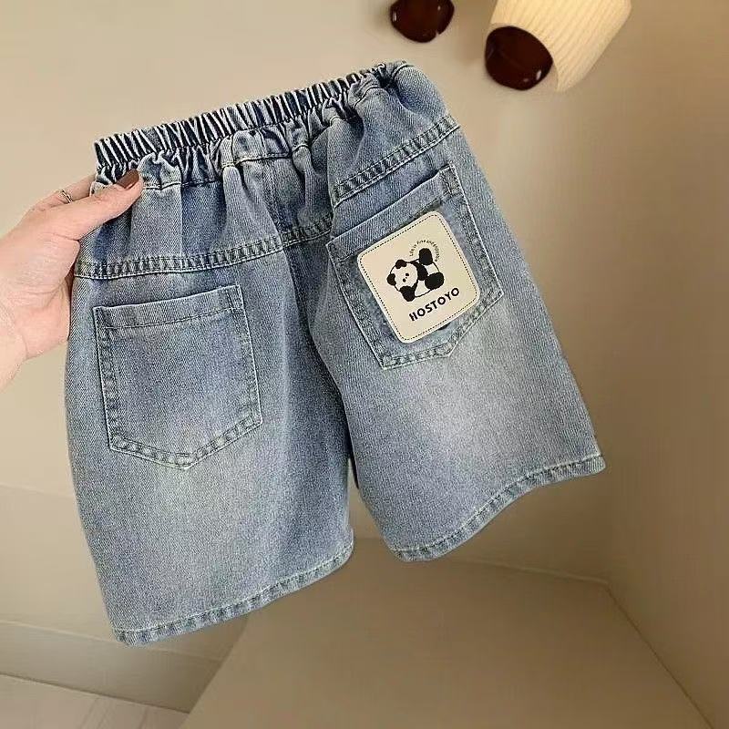 아동 데님 반바지 여름 2025 새로운 스타일 소년의 멋진 캐주얼 다용도 중간 바지 어린 소년의 5부 바지