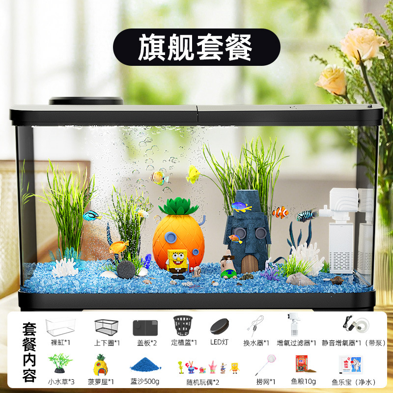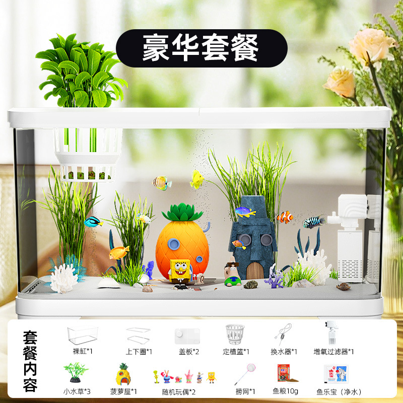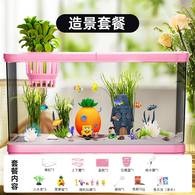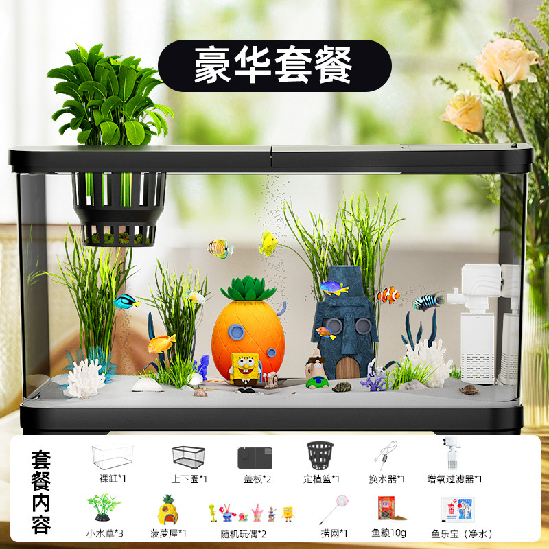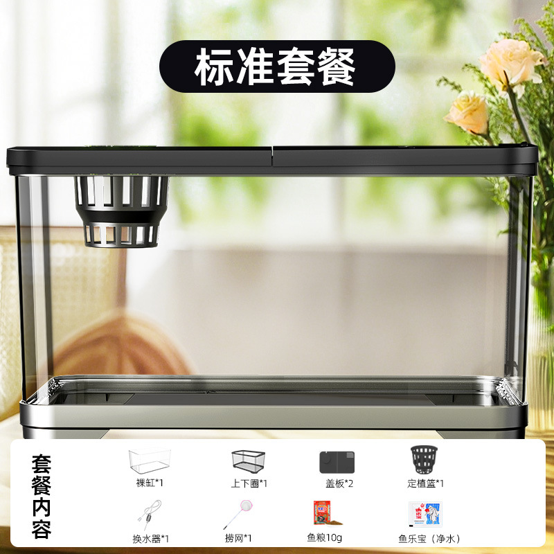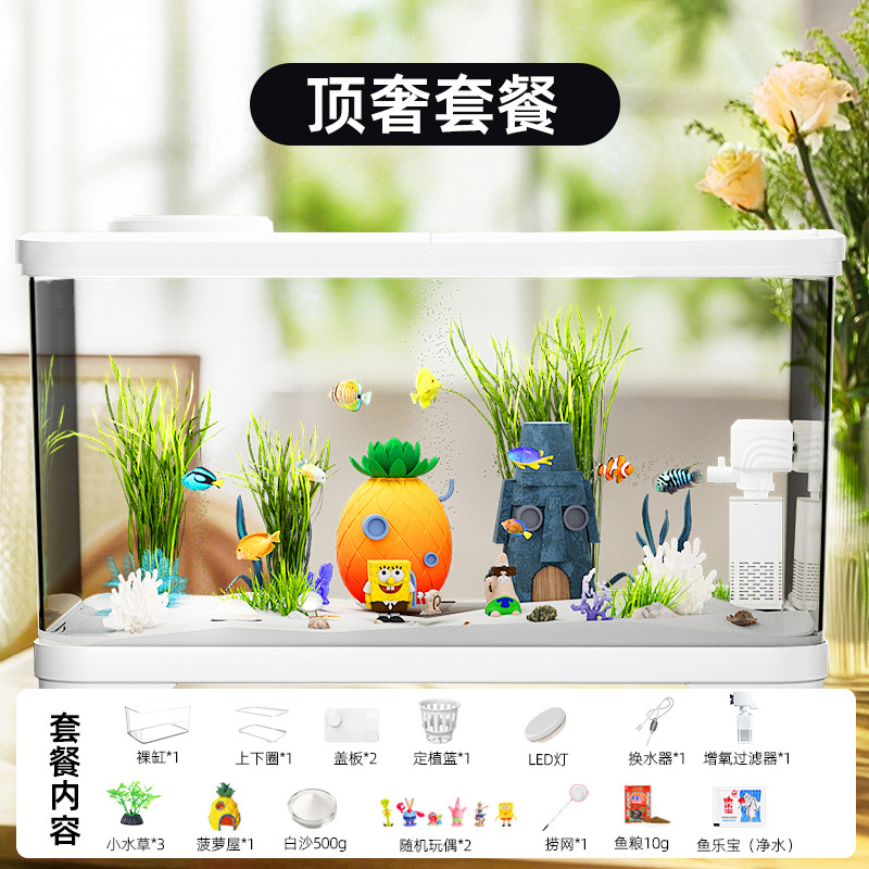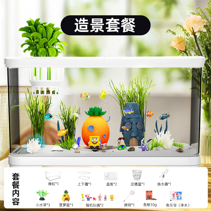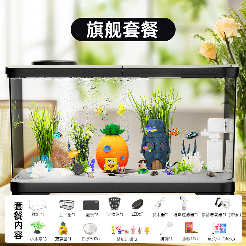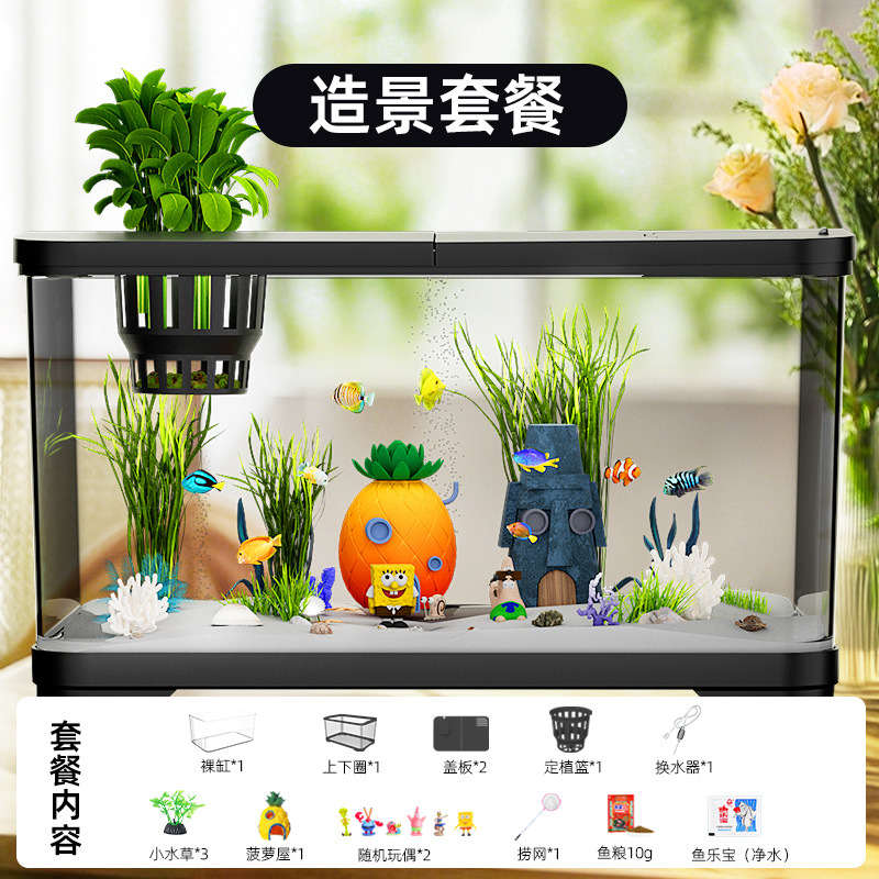 필터가 내장된 일체형 어항, 풍경 조성 완비, 일체형 소형 아크릴 탁상용 관상 생태 어항, AS 금붕어 어항
