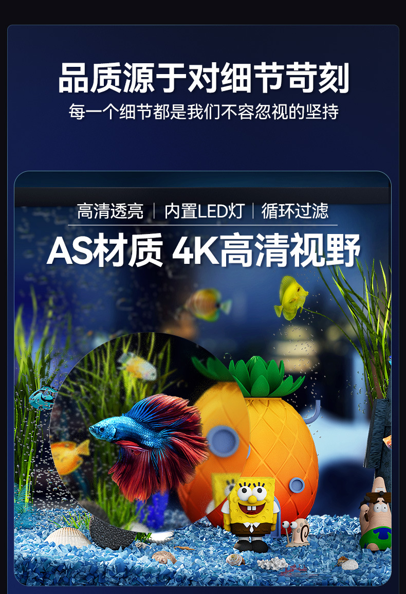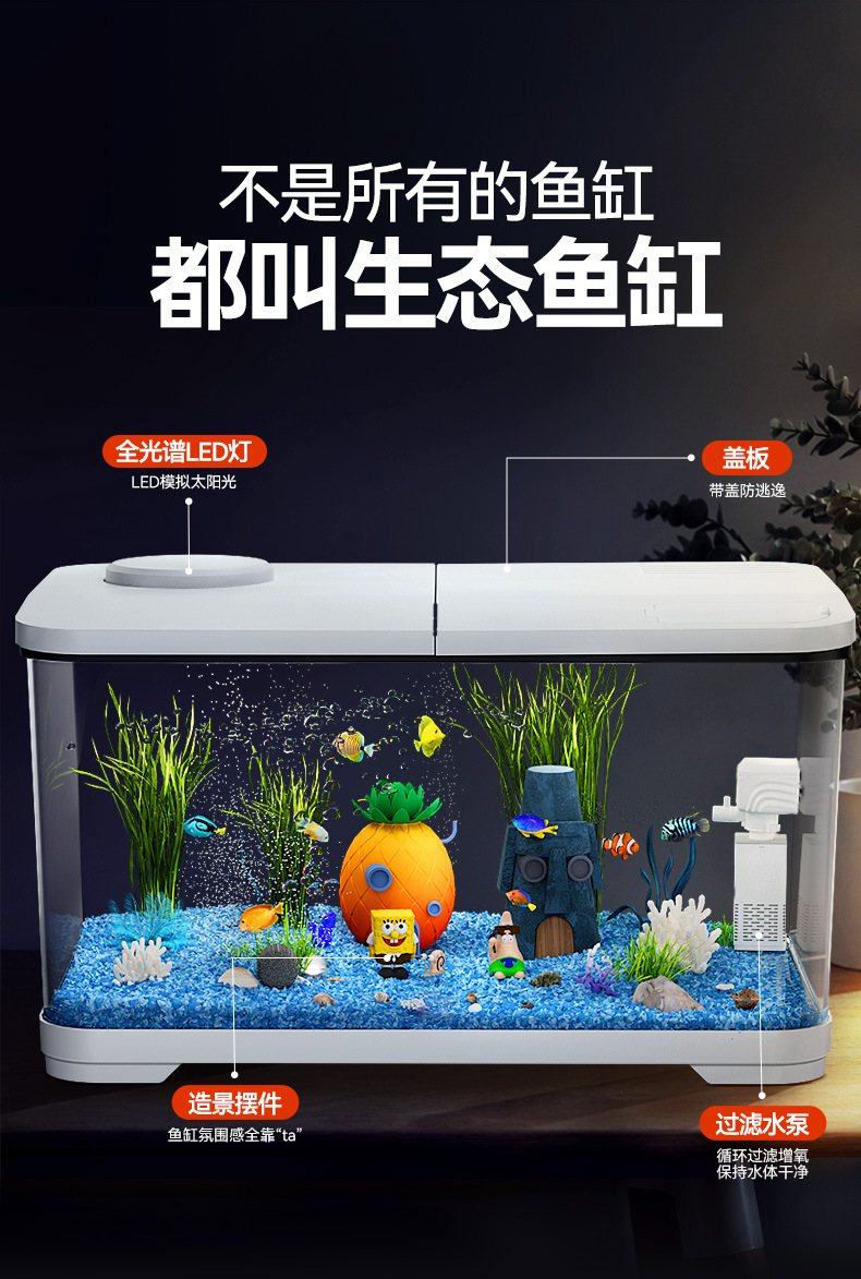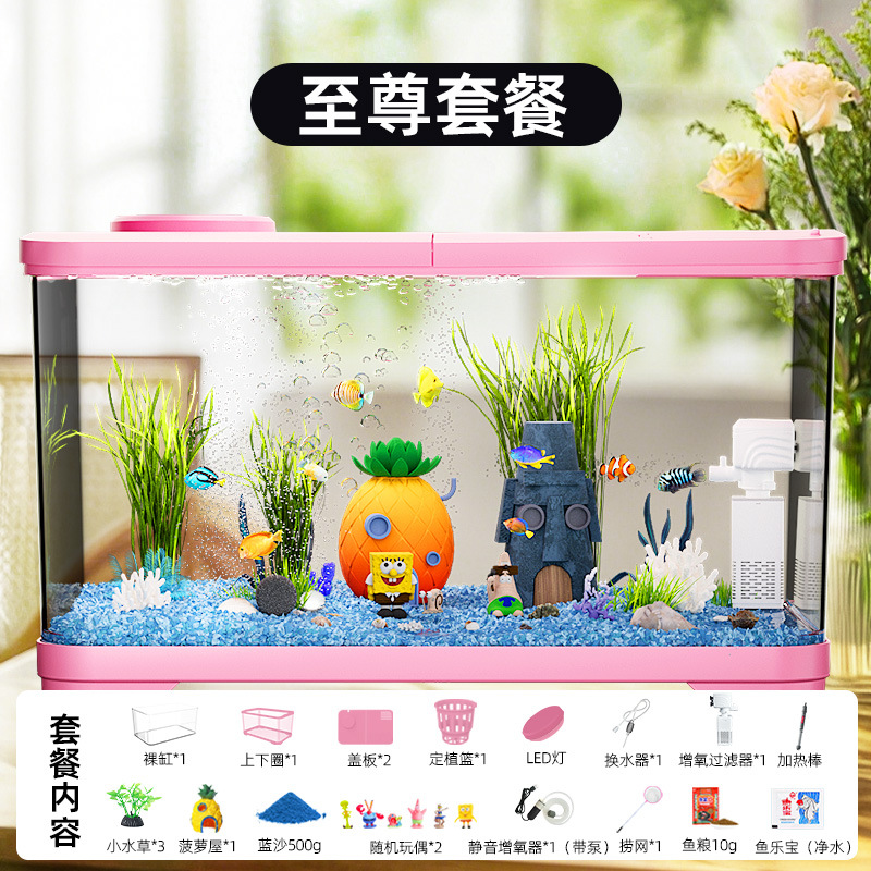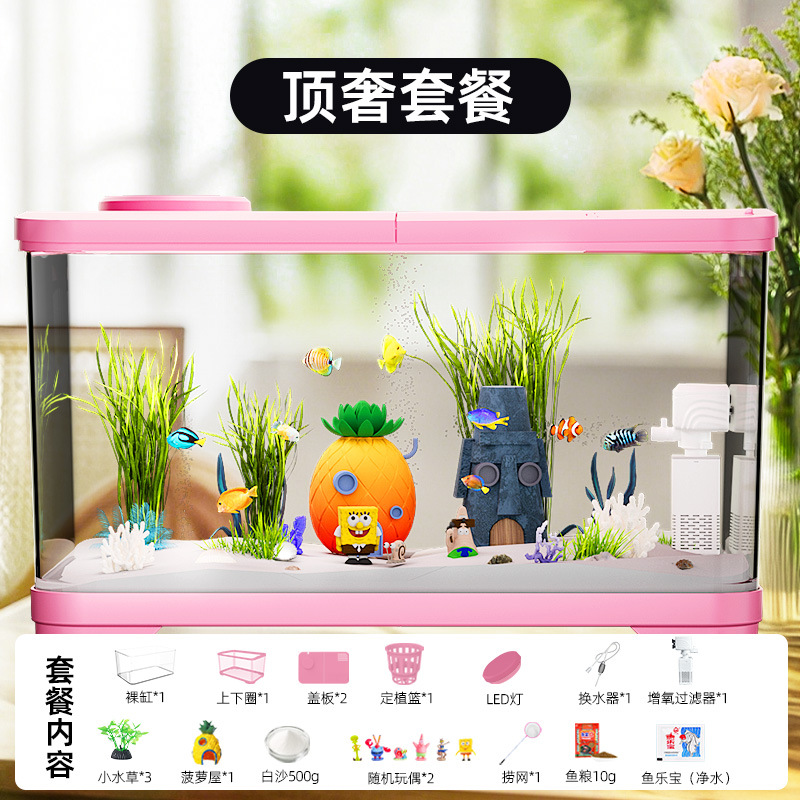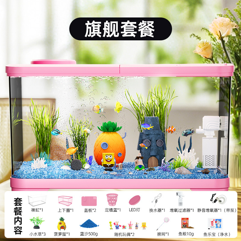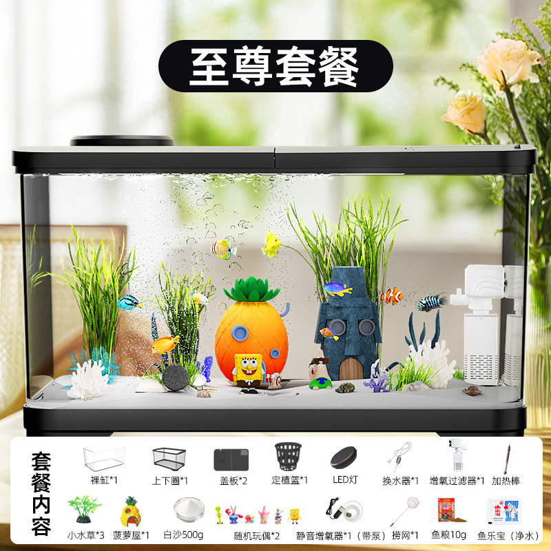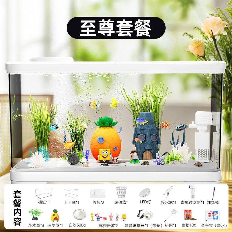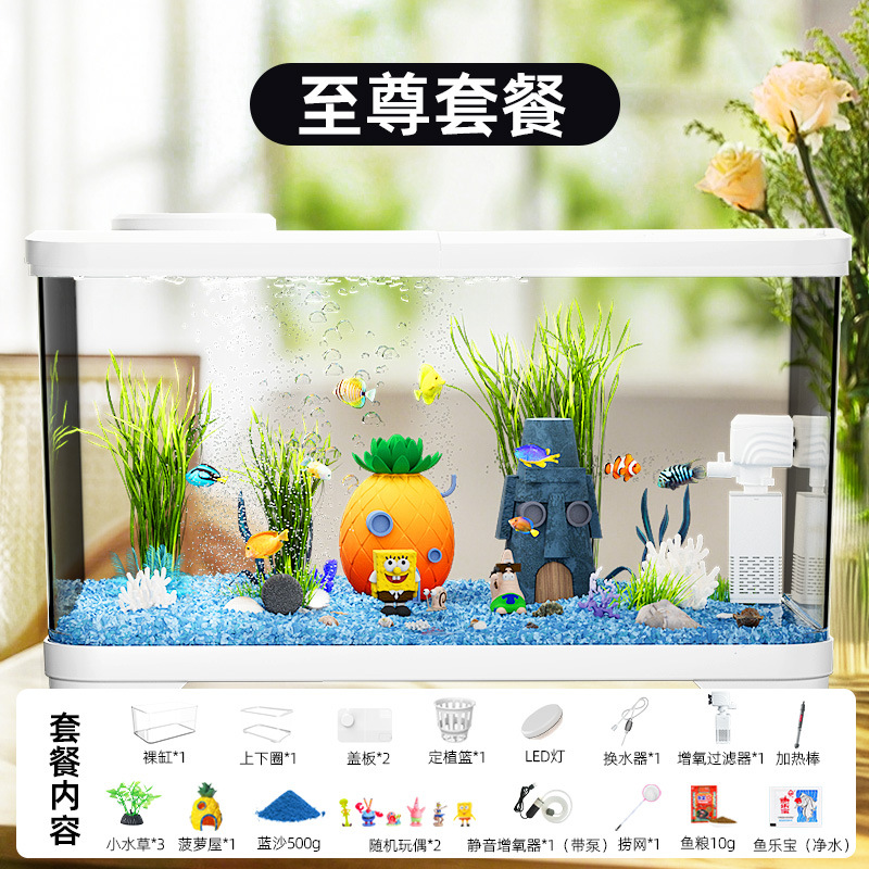 필터가 내장된 일체형 어항, 풍경 조성 완비, 일체형 소형 아크릴 탁상용 관상 생태 어항, AS 금붕어 어항