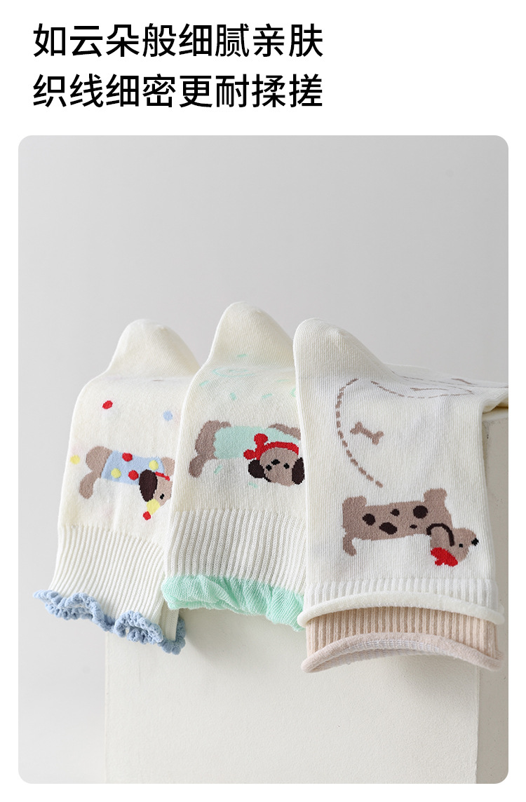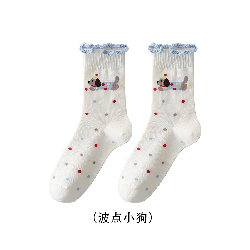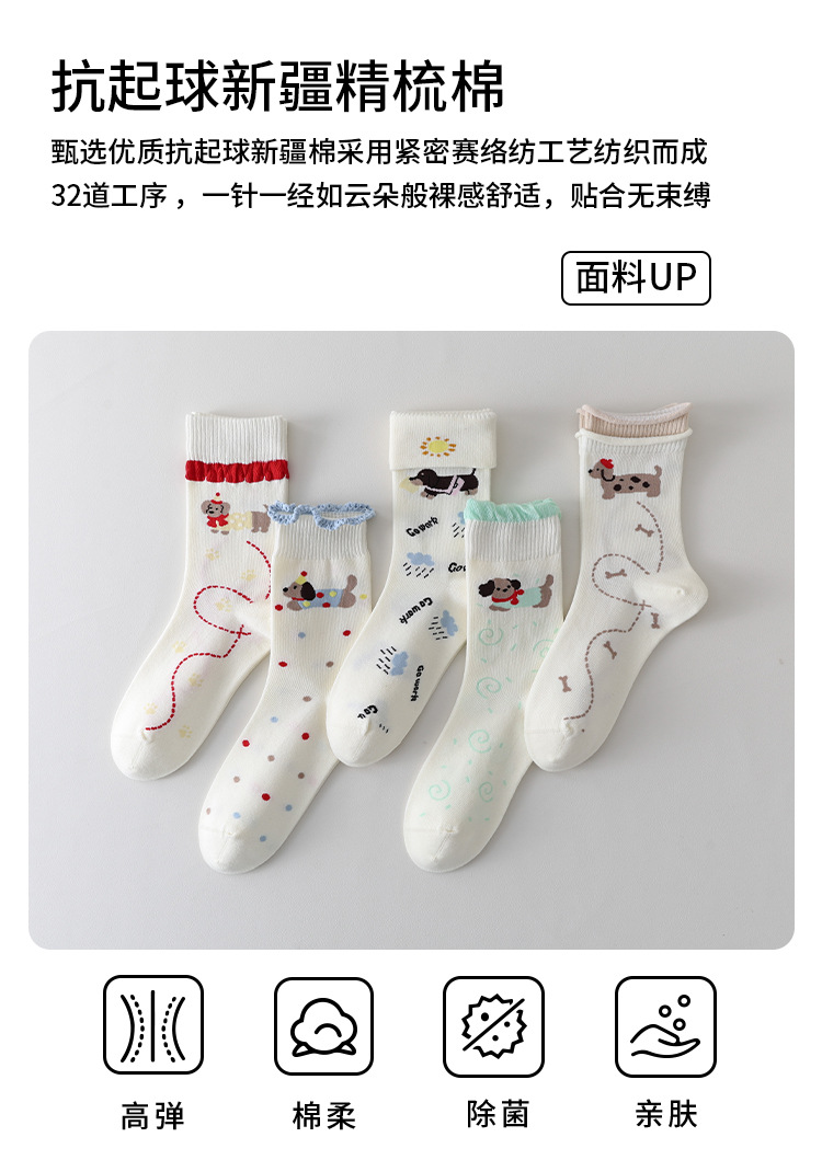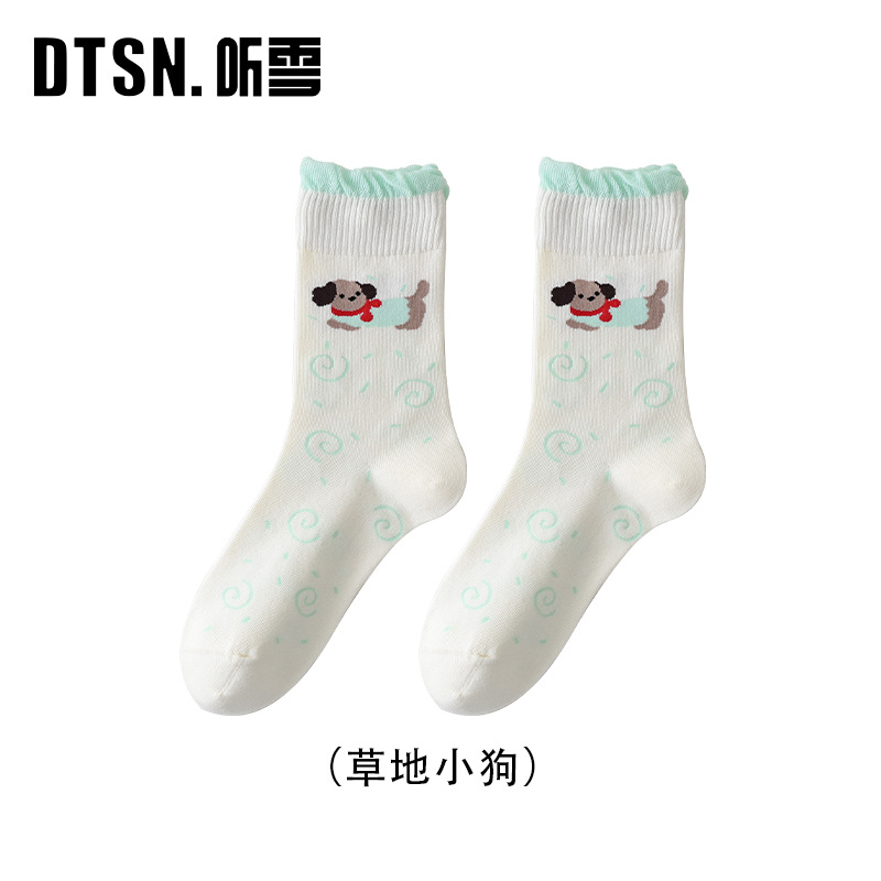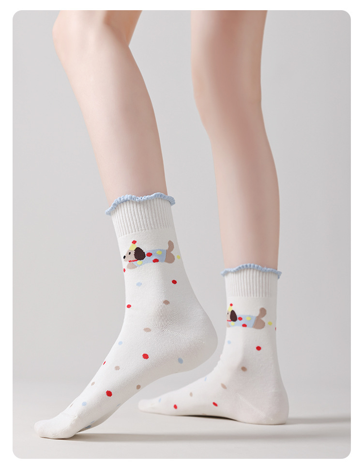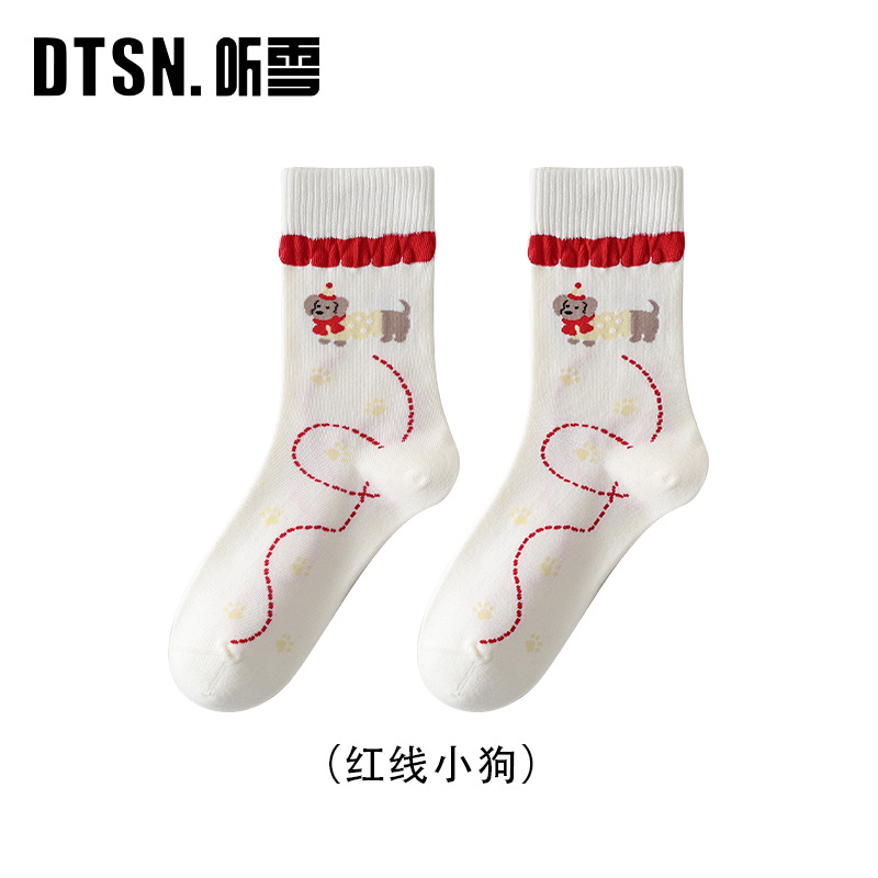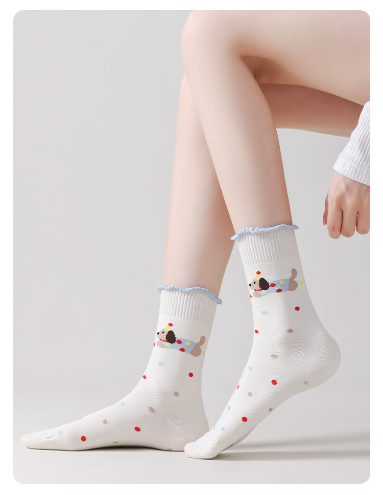 DUDU SNOW 봄과 가을 새로운 도착 닥스훈트 강아지의 하루 사계절 면 양말 만화 패턴 귀여운 중간 튜브 양말