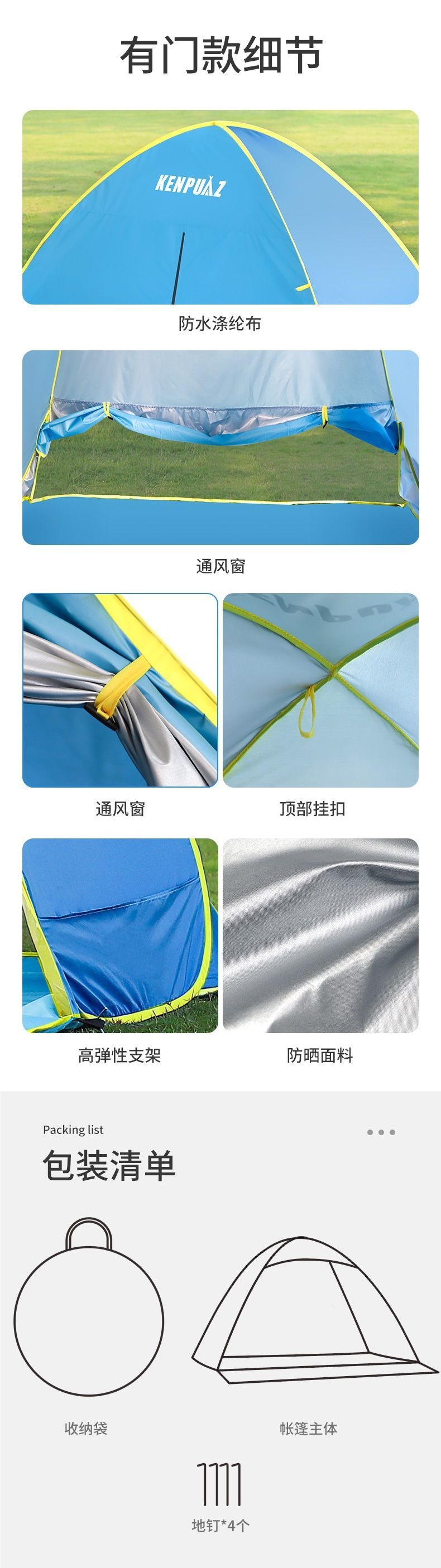 야외 해변 간단한 태양 보호 텐트 설치가 필요 없음 일체형 차양 휴대용 해변 접이식 실버 코팅