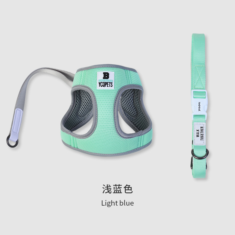 강아지 가죽끈 조끼형 통기성 소형견 산책용 가죽끈 테디 포메라니안 비숑 하네스 강아지 가죽끈