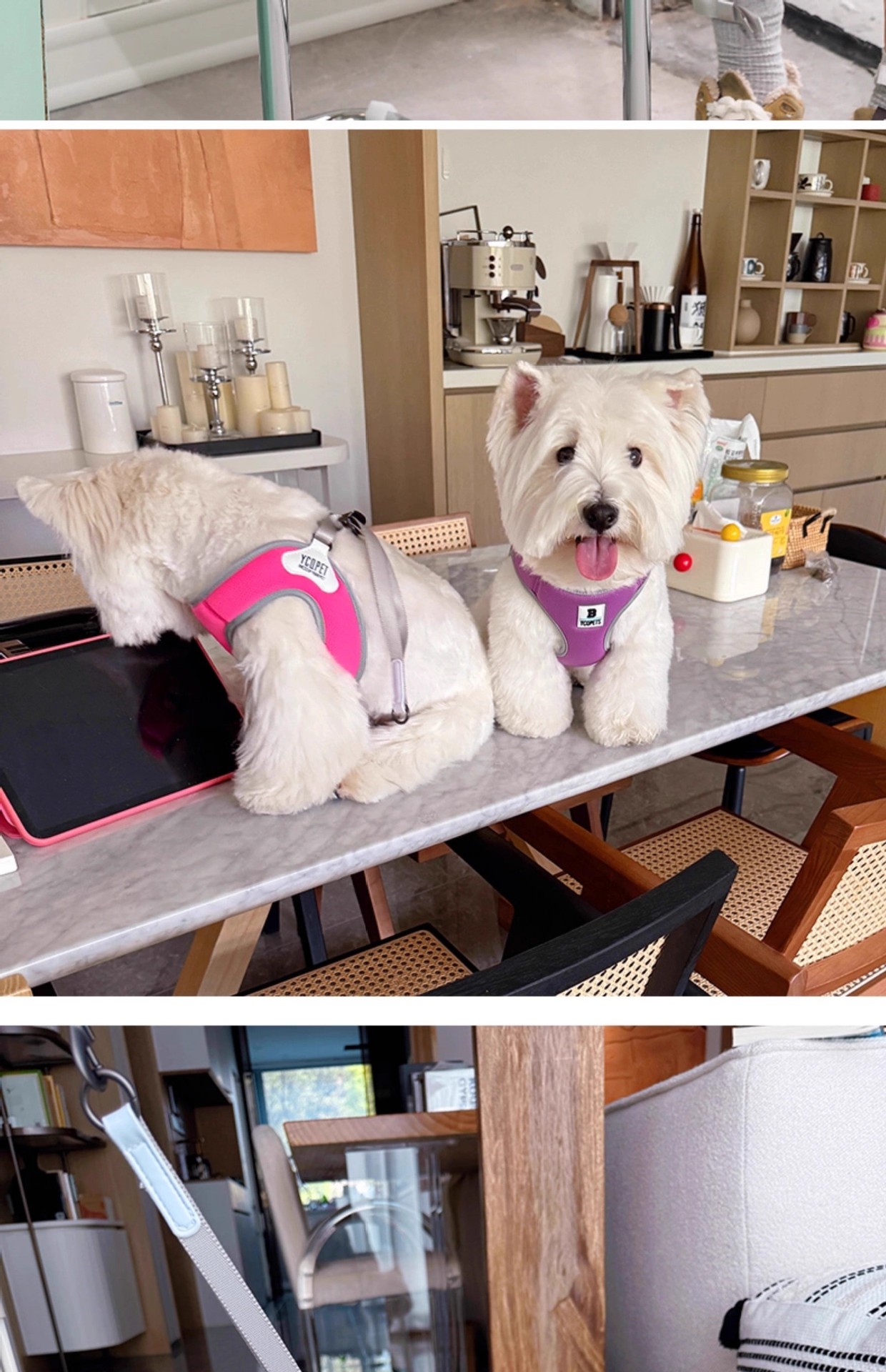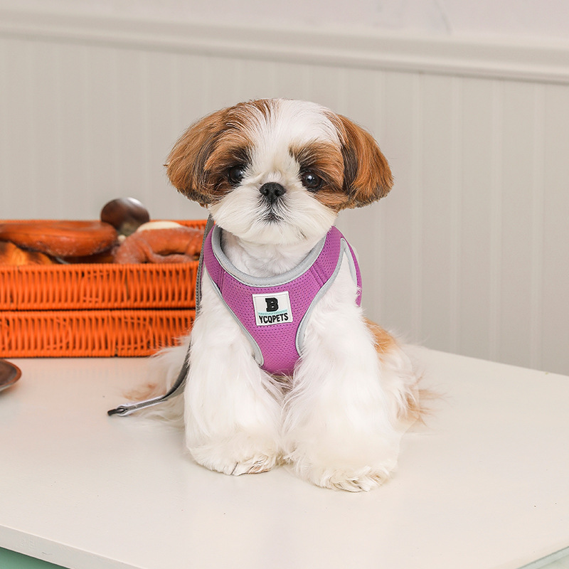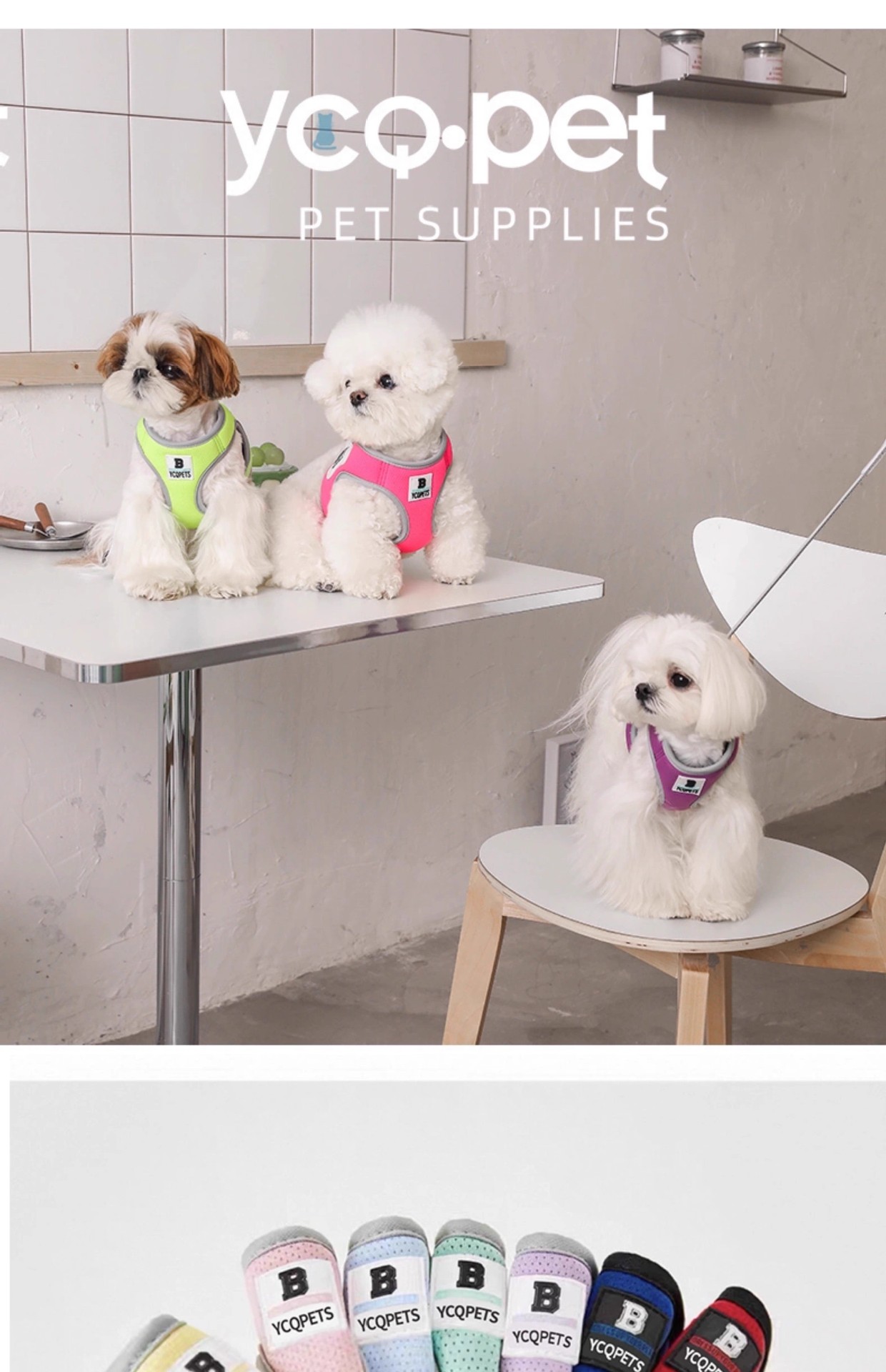 강아지 가죽끈 조끼형 통기성 소형견 산책용 가죽끈 테디 포메라니안 비숑 하네스 강아지 가죽끈스토어 가기