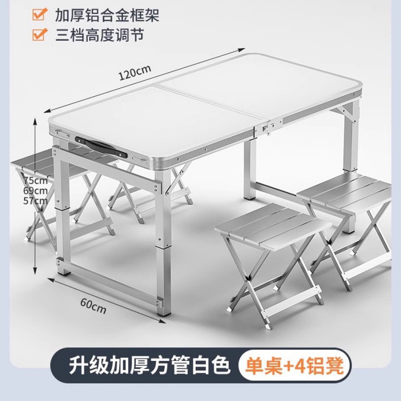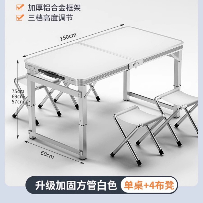 • [매우 안정적인 대형 사각 튜브] 180 흰색 + 알루미늄 스툴 4개
