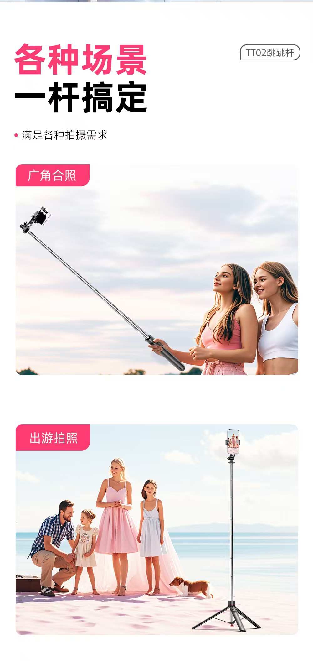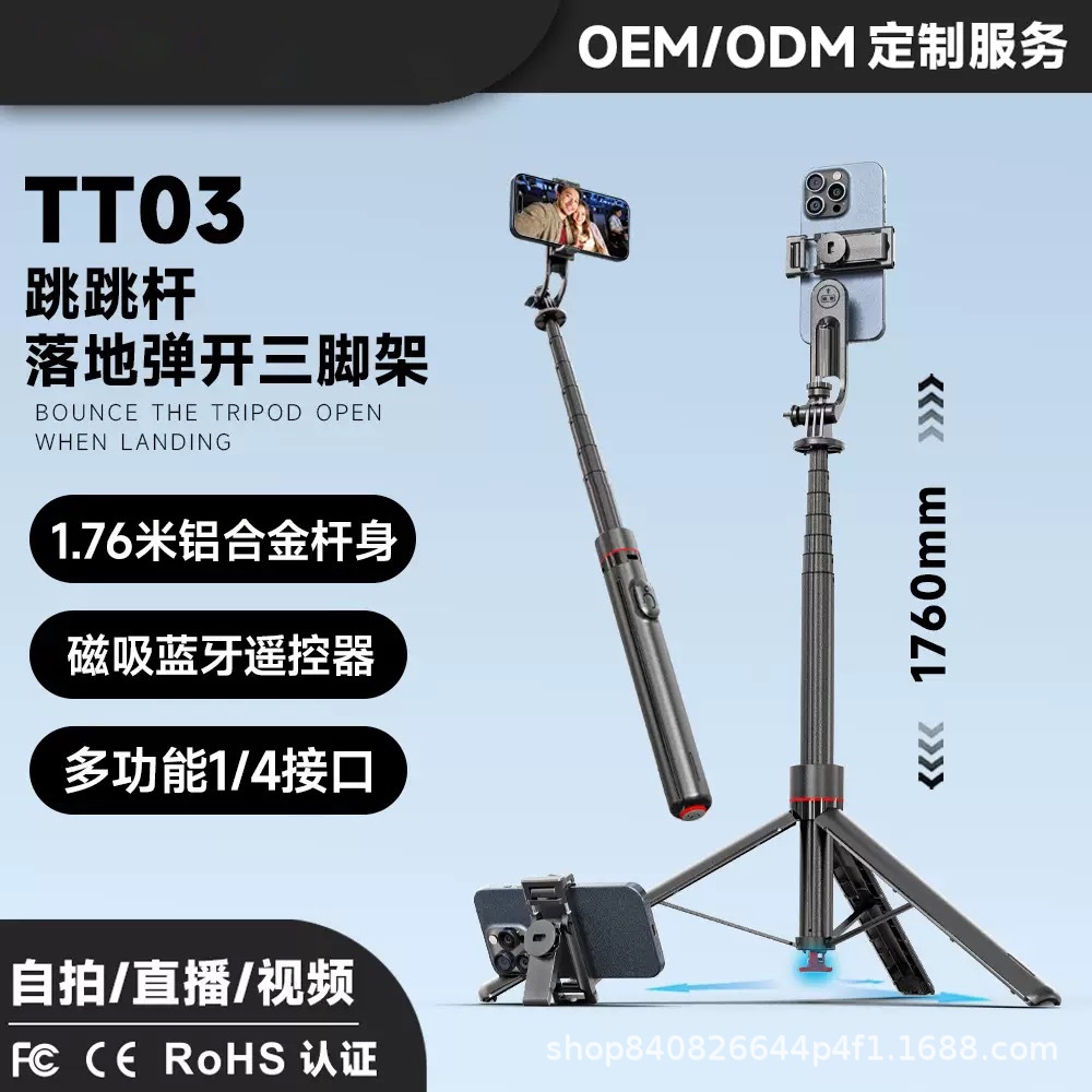 점프 스틱 TT03 삼각대 여행 휴대용 휴대폰 홀더 점프 스틱 셀카 스틱 라이브 사진 유물
