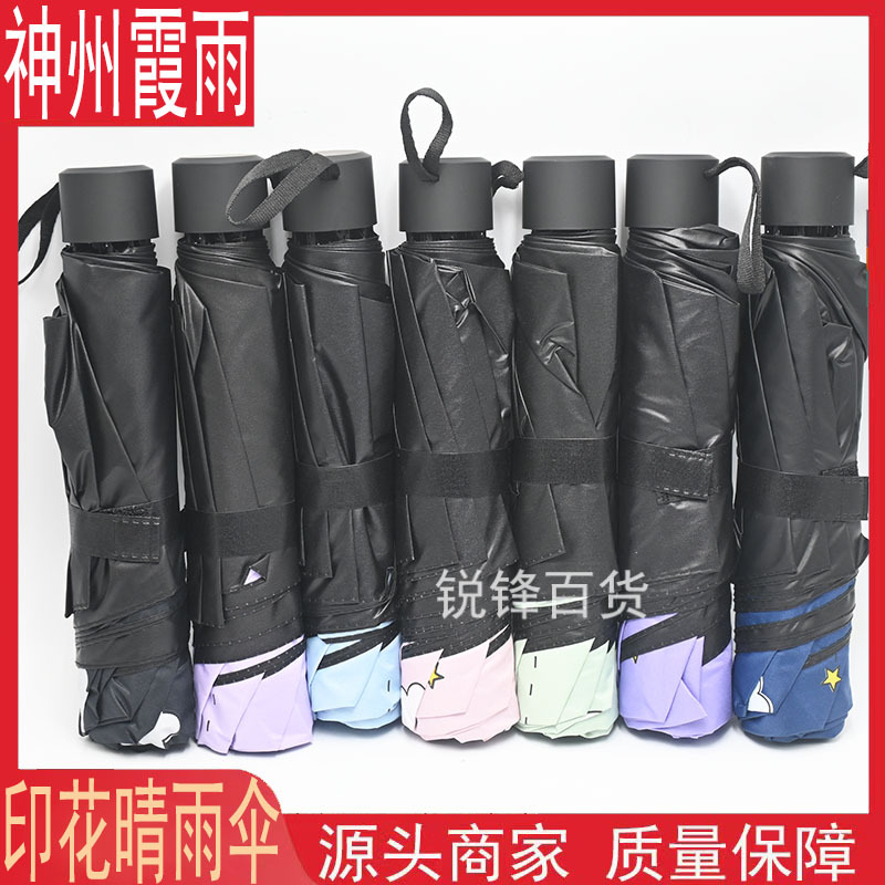 여성을위한 Shenzhou Xiayu 수동 접는 우산, 비 또는 빛, 귀여운 만화 비닐 자외선 차단제 및 자외선 차단 파라솔
