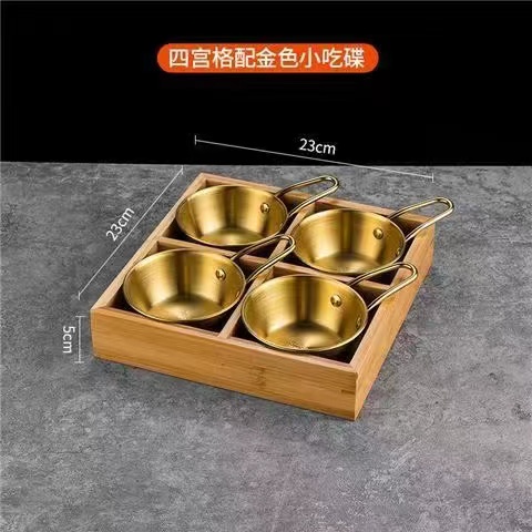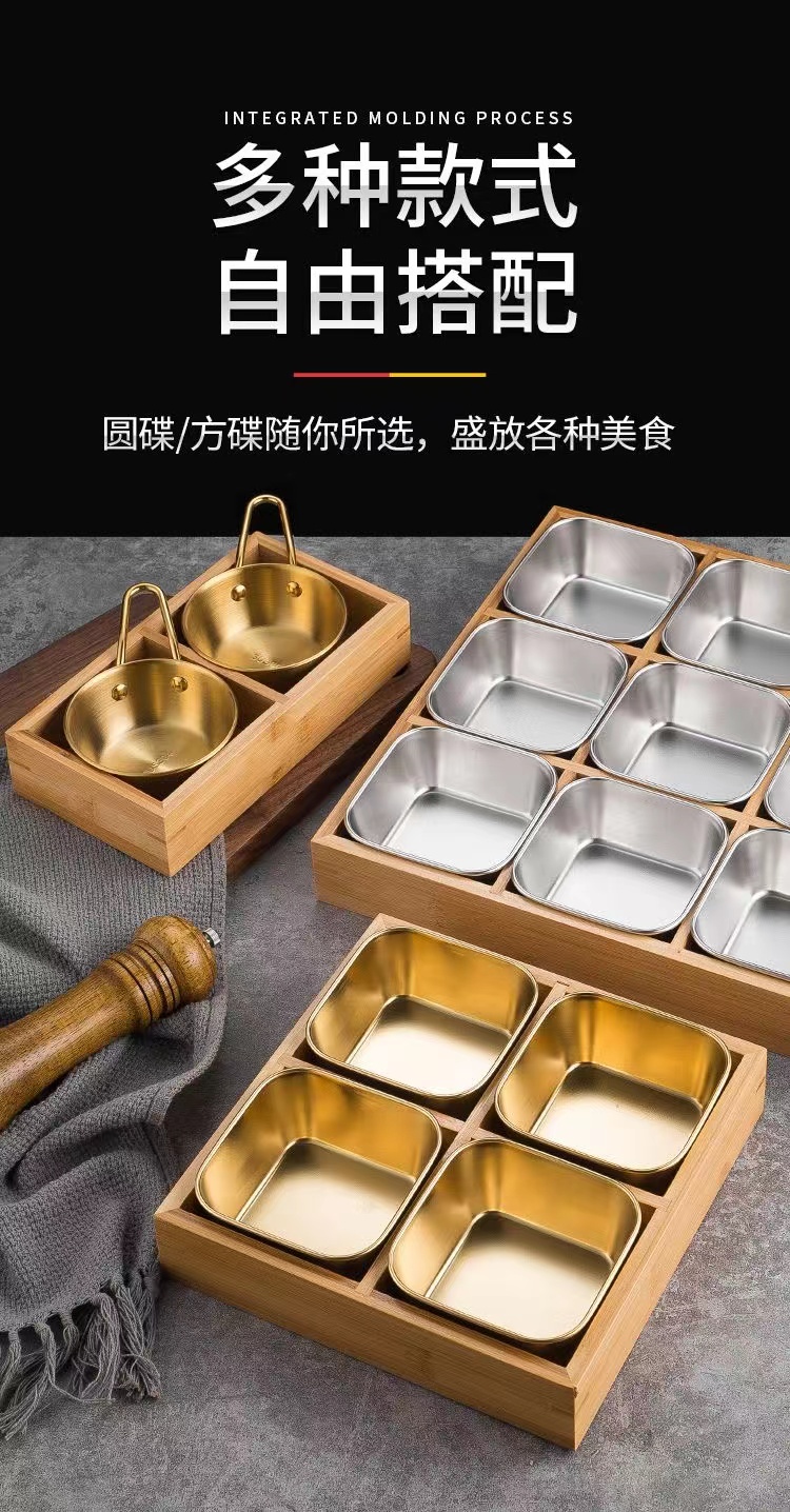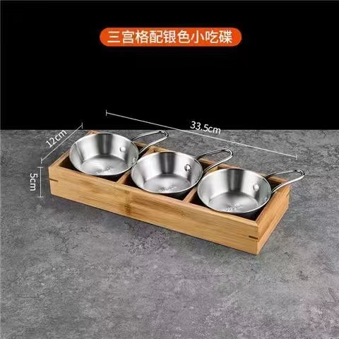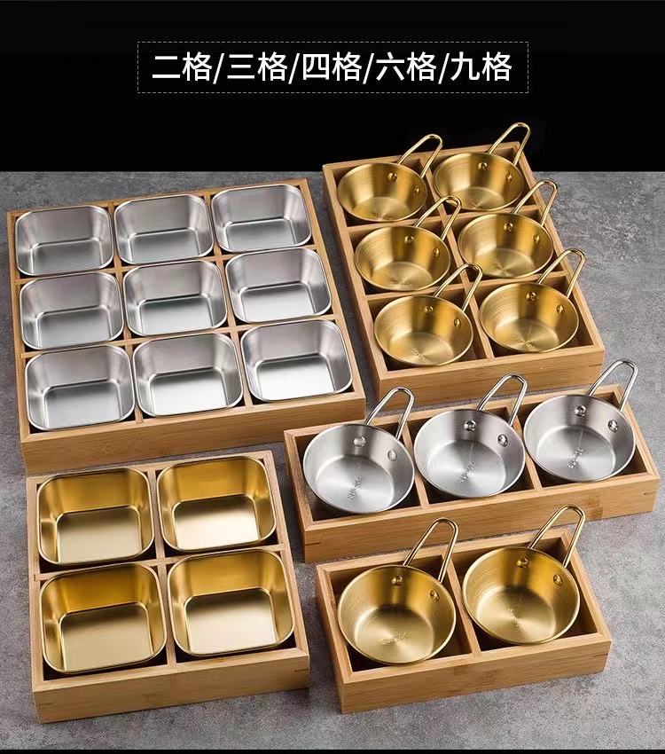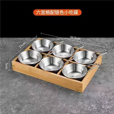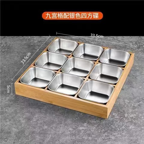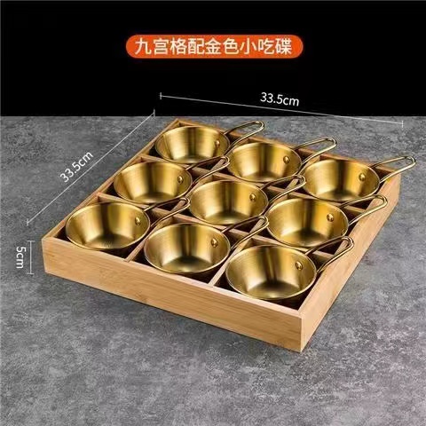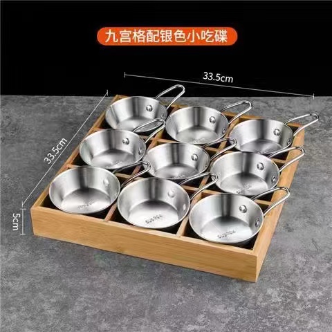 한국식 바비큐 식기, 조미료 그릇, 스테인리스 스틸 인터넷 연예인 디핑 접시, 칸막이 상자, 전골, 9각형 그리드 반찬 트레이
