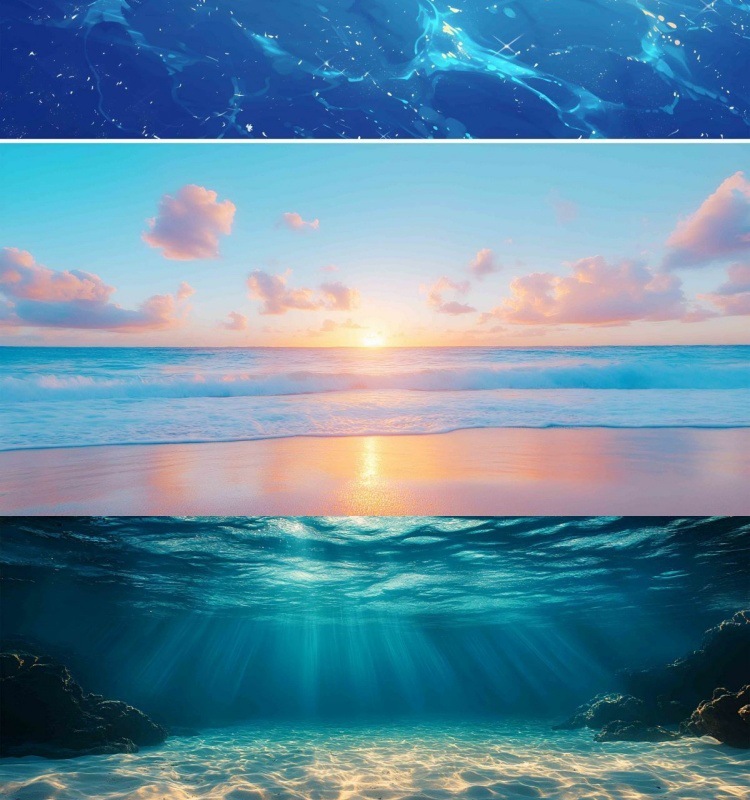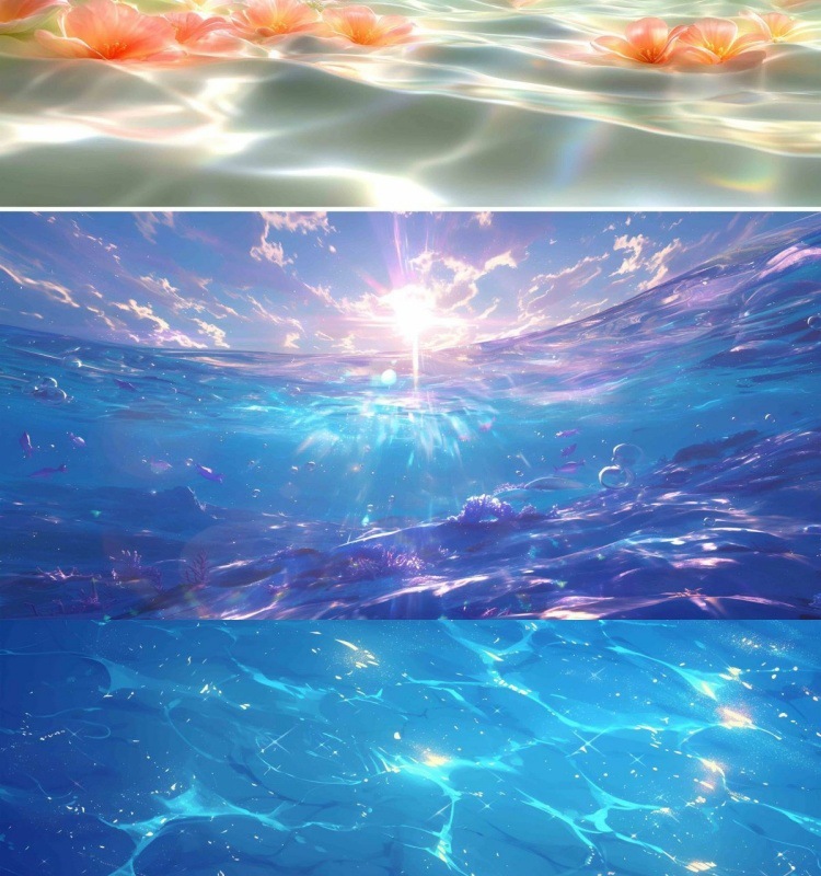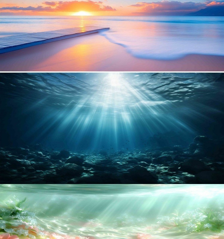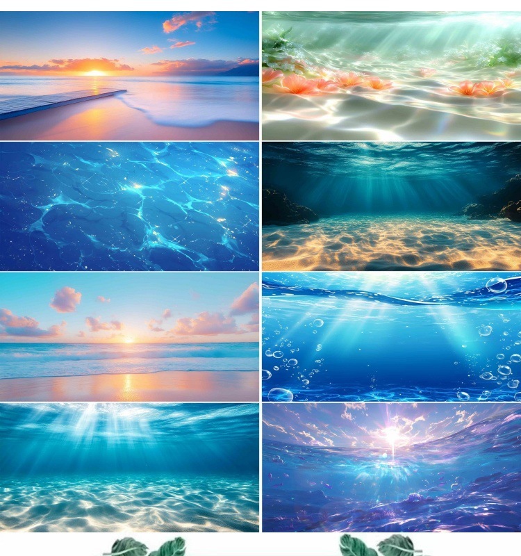 수조 배경 스티커, 바다 햇빛, 바닷물 그림, 고화질 수족관 조경 및 장식 수조스토어 가기