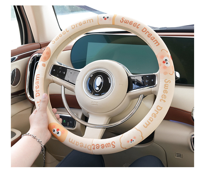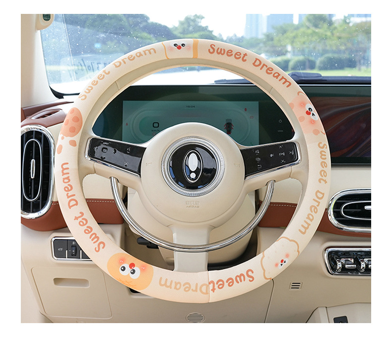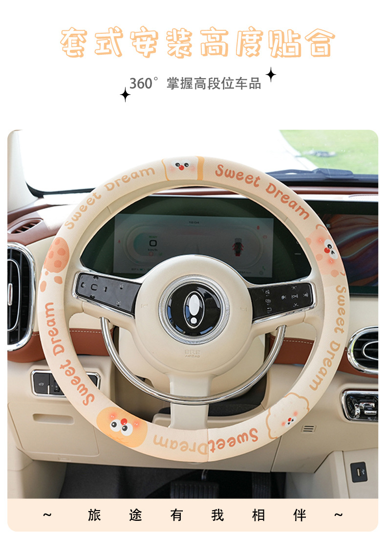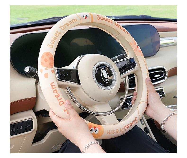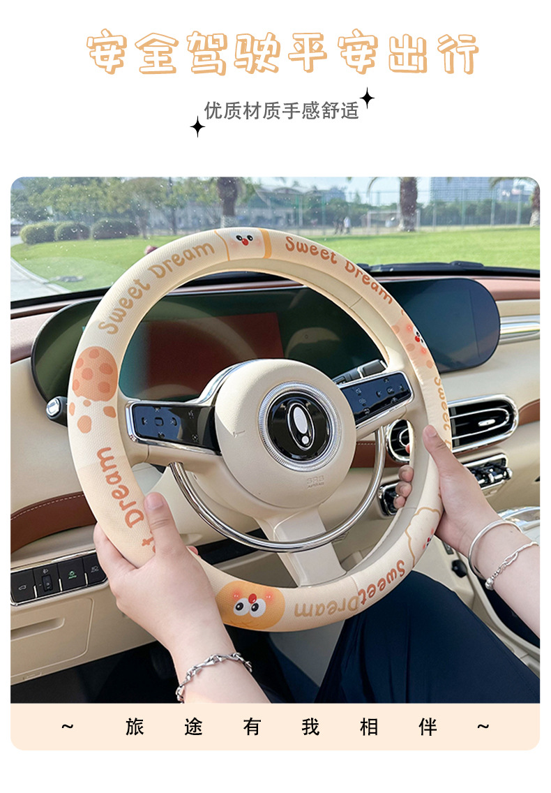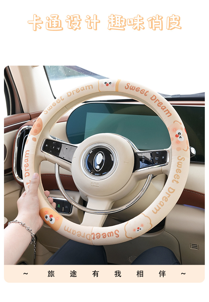 사계절 사용 가능한 맞춤형 자동차 핸들 커버, 편안하고 미끄럼 방지 및 땀 흡수성 여름용 만화 자동차 핸들 커버스토어 가기
