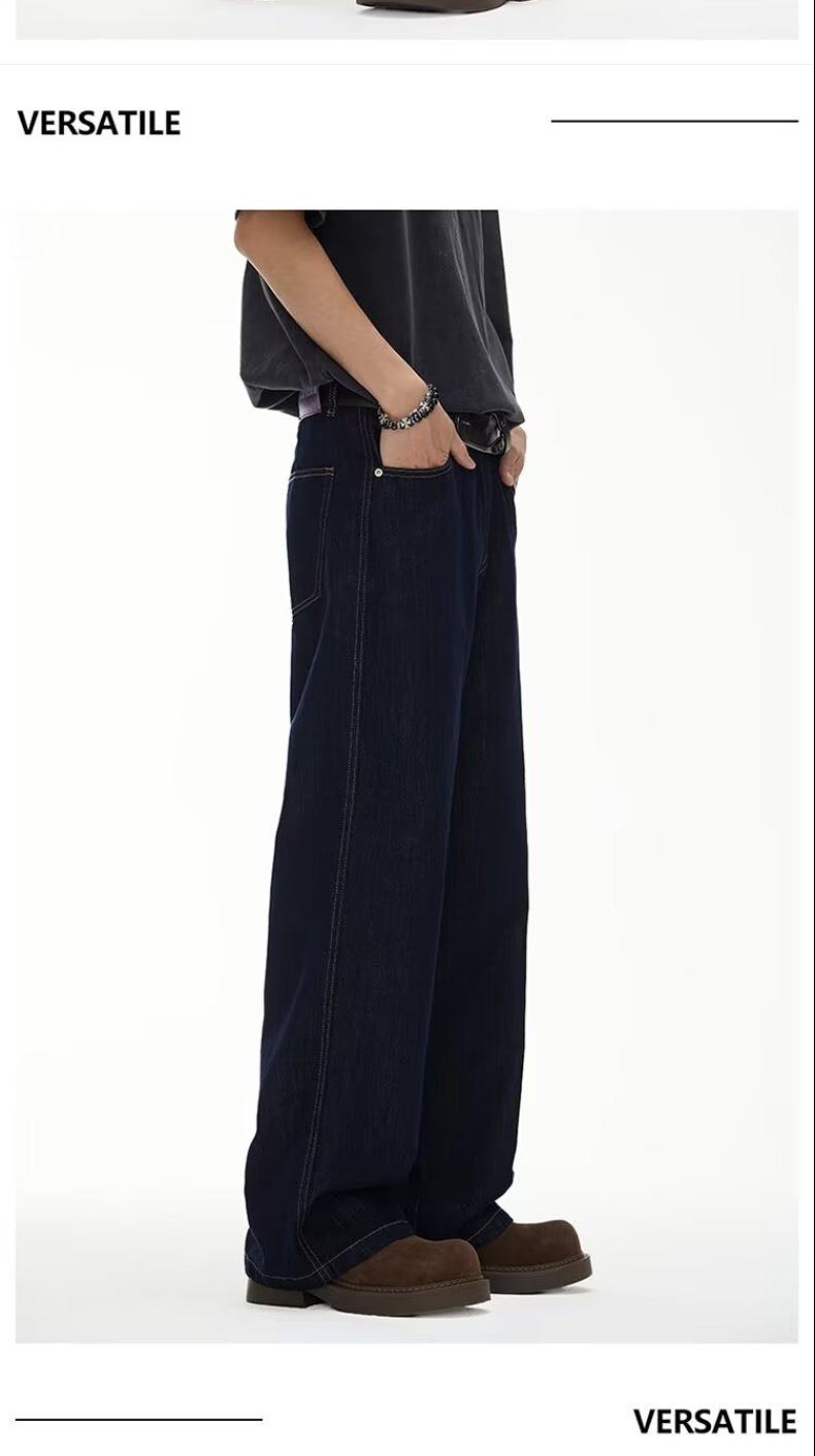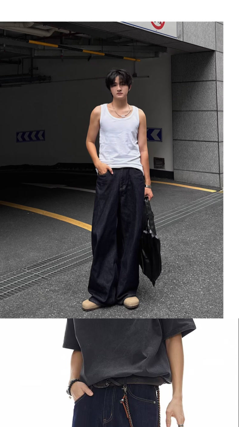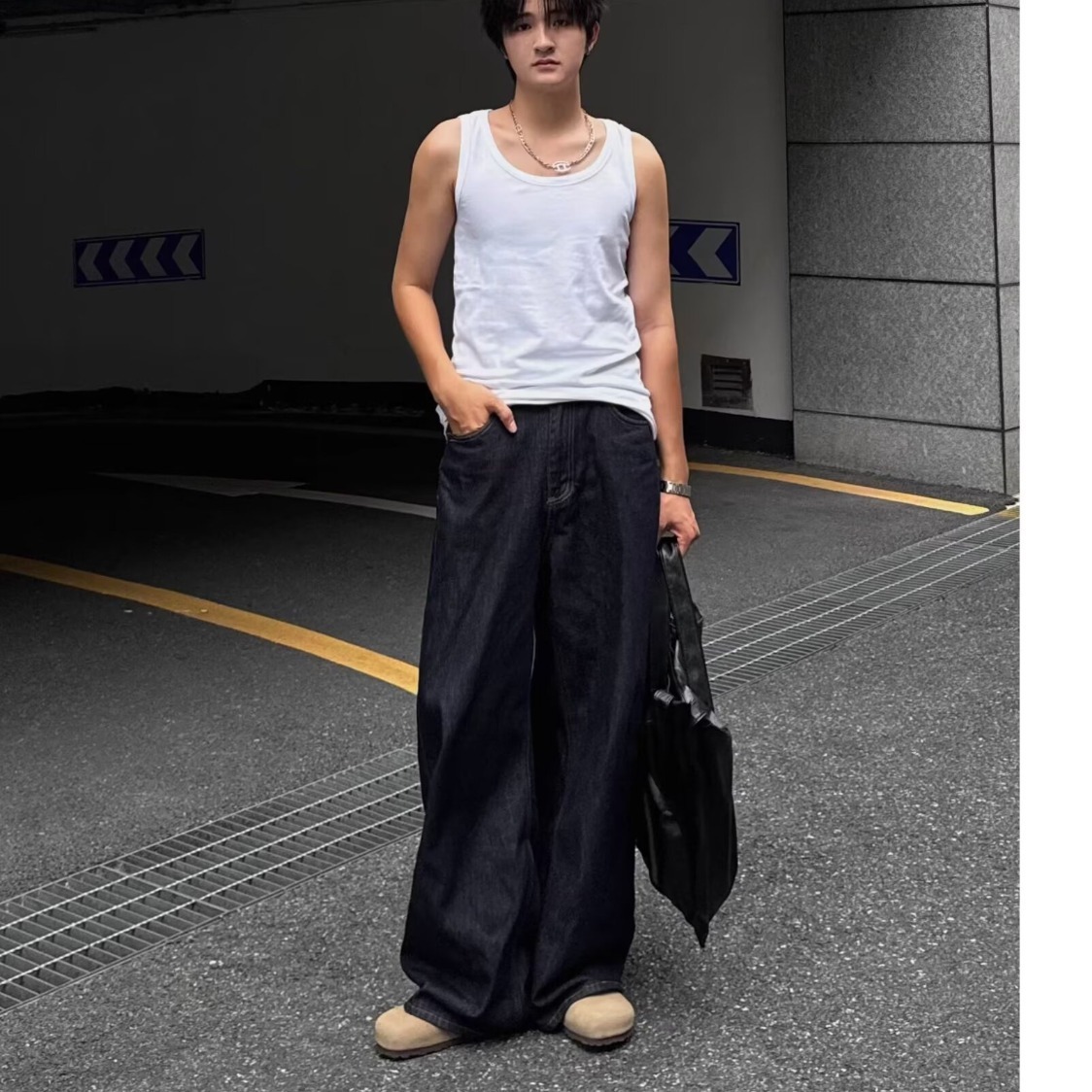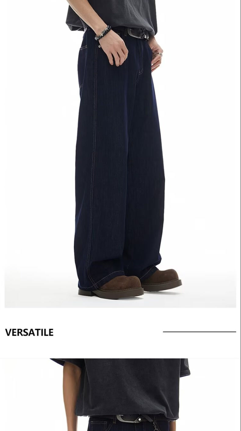 2025 남성 스트레이트 데님 오리지널 컬러 청바지 남성 여름 오리지널 소가죽 A라인 루즈 와이드 팬츠스토어 가기