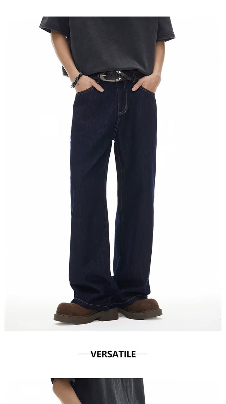 2025 남성 스트레이트 데님 오리지널 컬러 청바지 남성 여름 오리지널 소가죽 A라인 루즈 와이드 팬츠