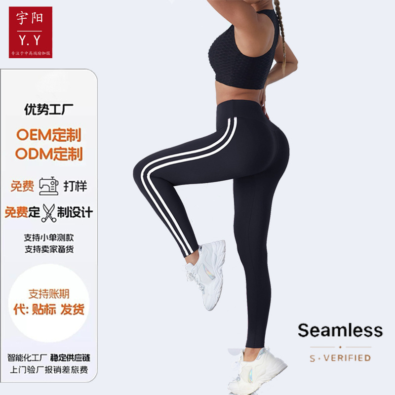 여성용 크로스보더 요가팬츠, 피트니스팬츠, 배색복숭아힙, 하이웨이스트 복부조절 스포츠팬츠, 아웃도어 런닝 요가복