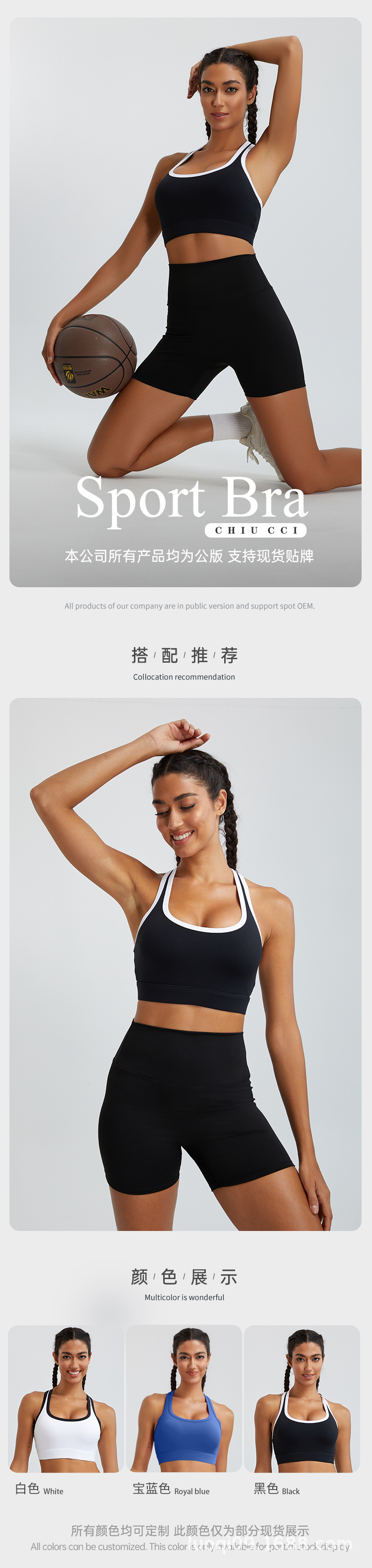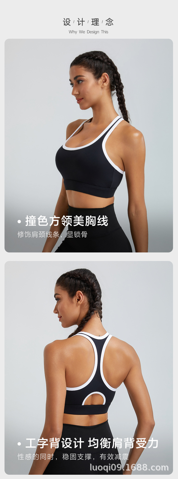 2025 새로운 스포츠 요가 속옷 브래지어 여성 I자형 아름다운 등 요가 대비 색상 넥라인 아름다운 가슴 스포츠 조끼