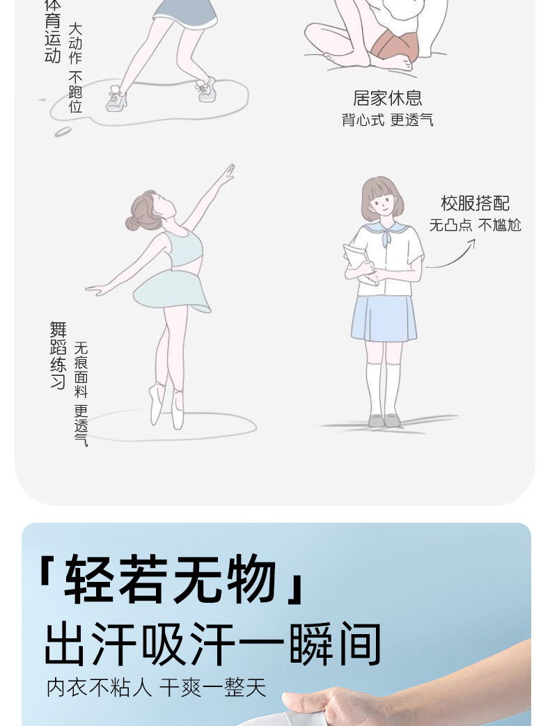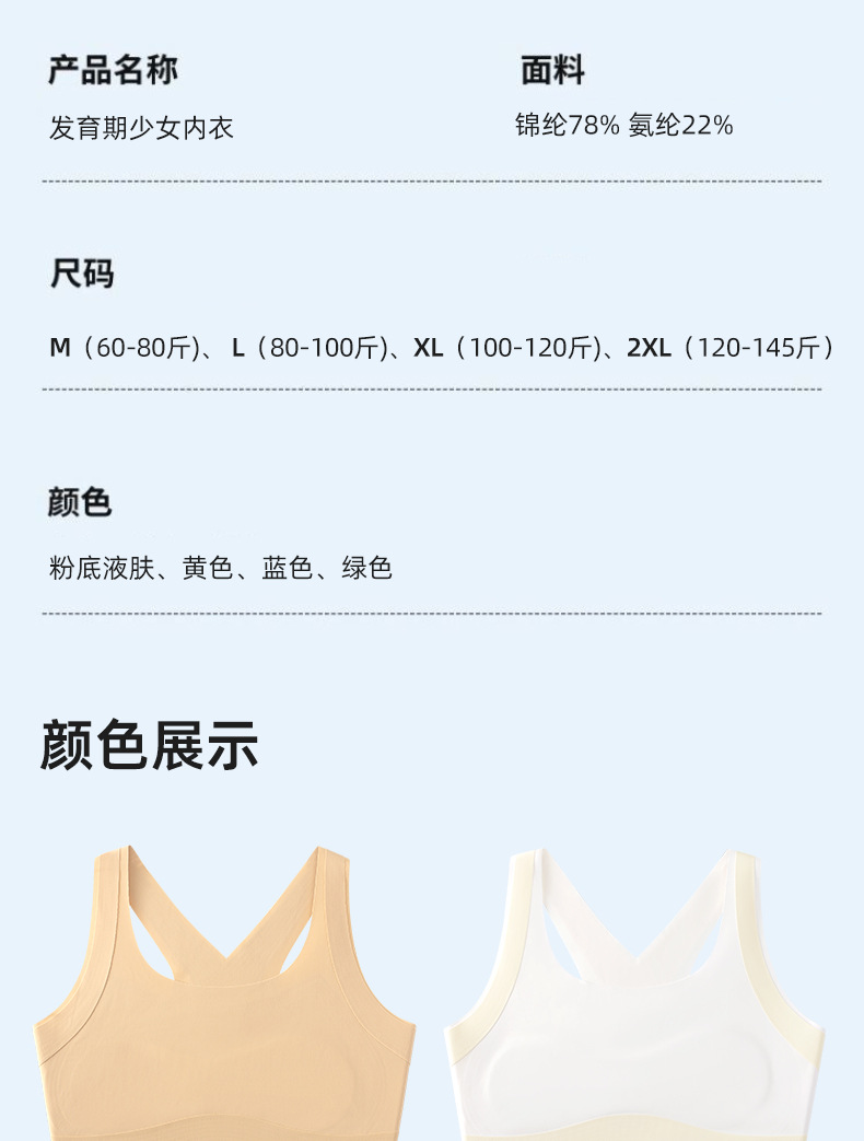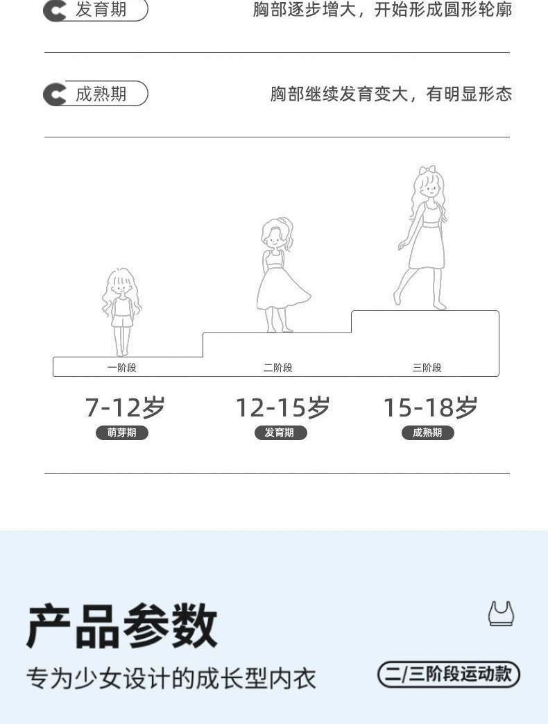 발달기 눈에 보이지 않는 불투명 색상으로 당황스러움을 방지하는 1단계 여아 속옷 초등학생 속옷 7~12세 아동용 브라