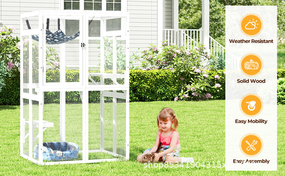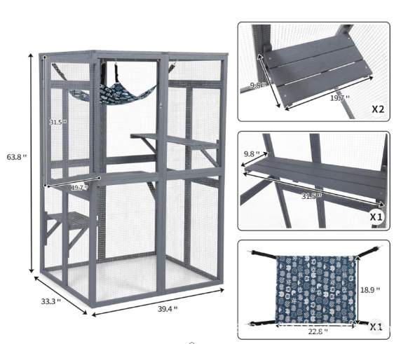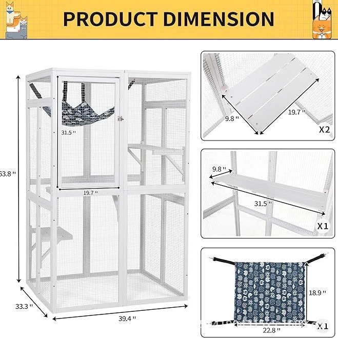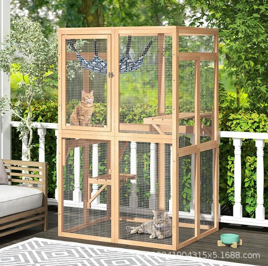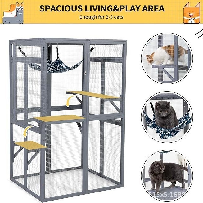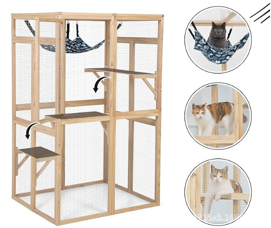 야외용 나무 고양이 울타리, 실내용 고양이 화장실, 고양이 클라이밍 프레임, 나무 애완동물 하우스 쉼터